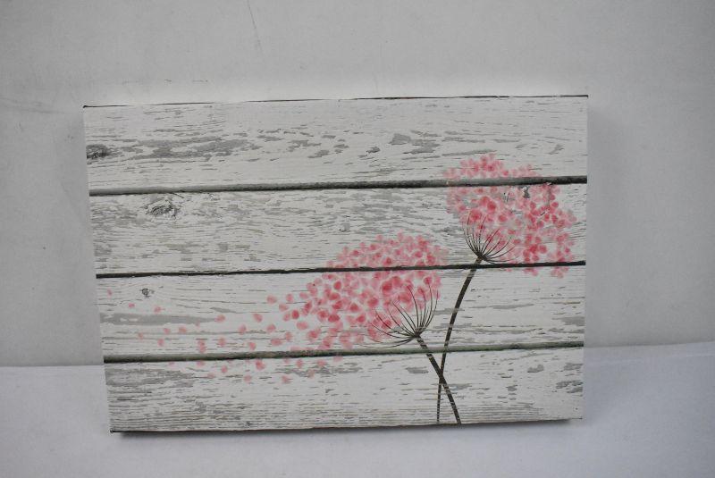 Wrapped Canvas Wall Decor, Image of Wood Slats w/ Pink Flowers, 12" x 18"