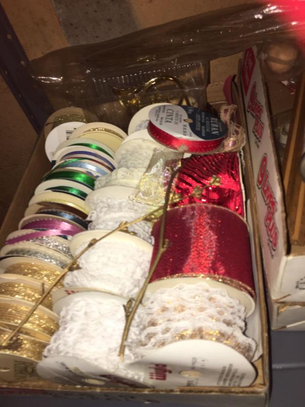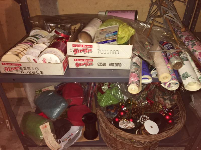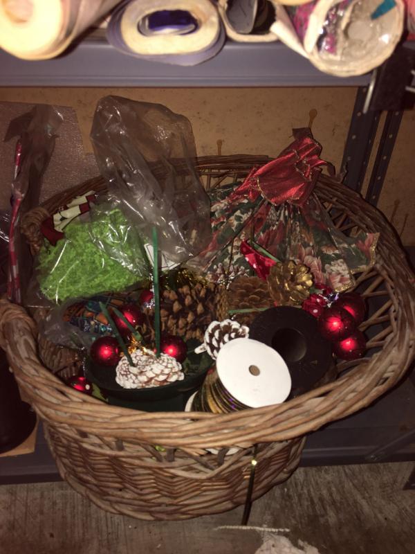 Large lot and basketful of Christmas and holiday items most for wrapping - Basement/Garage Item so may need cleaning