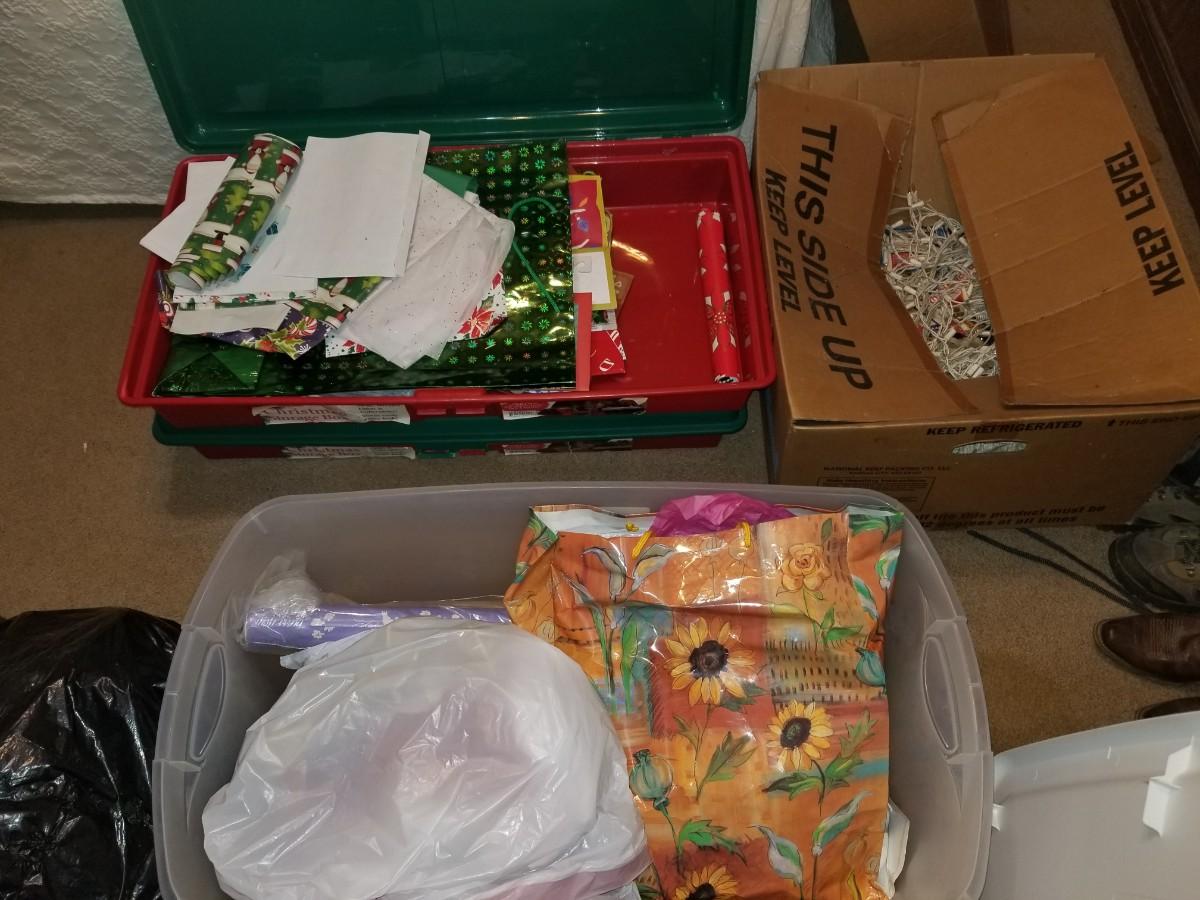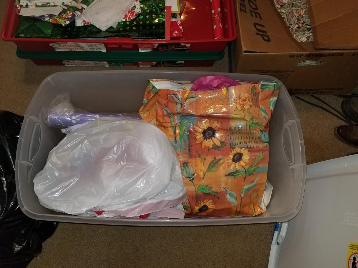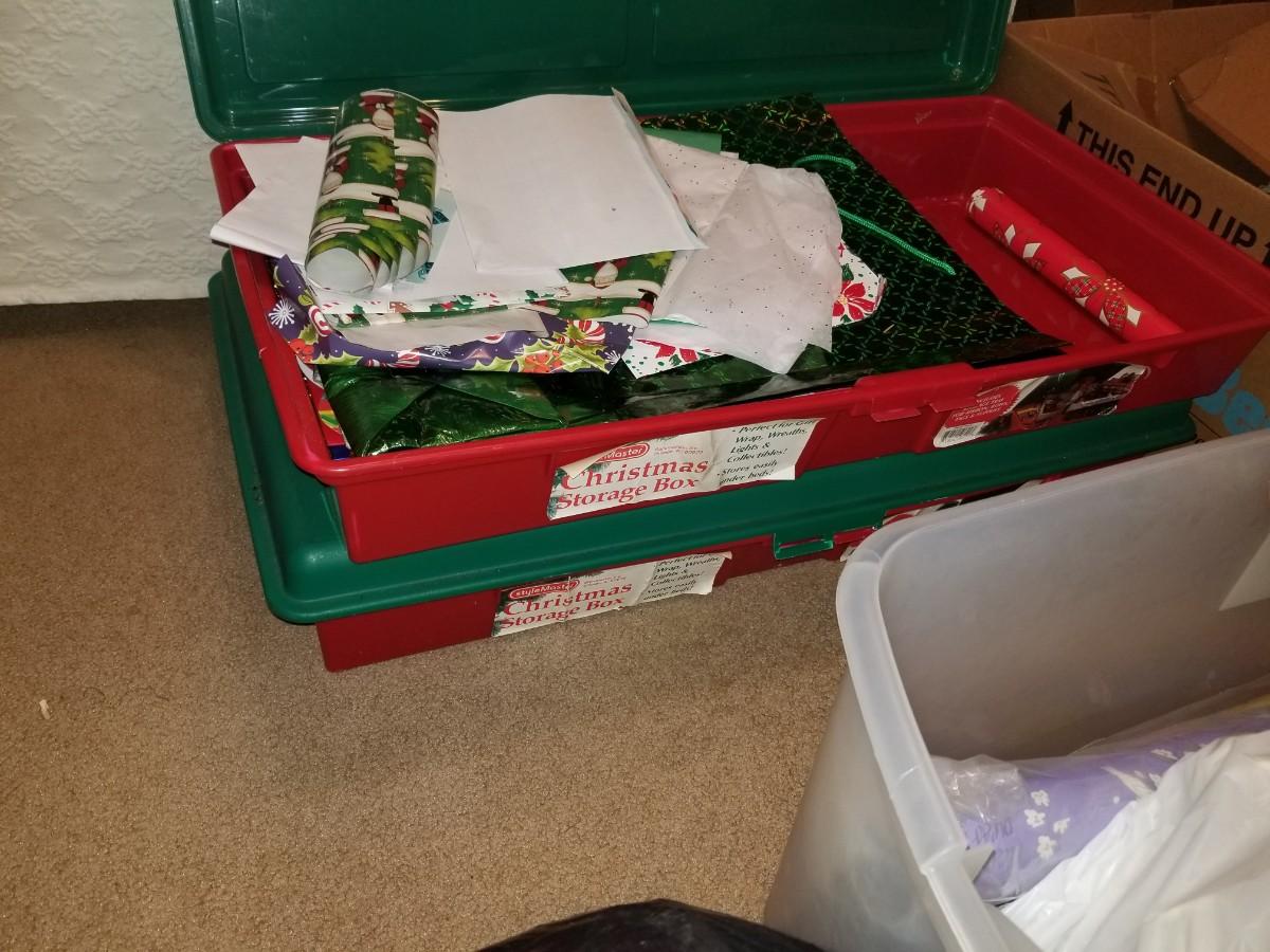 Christmas icicle lights and variety of wrapping paper