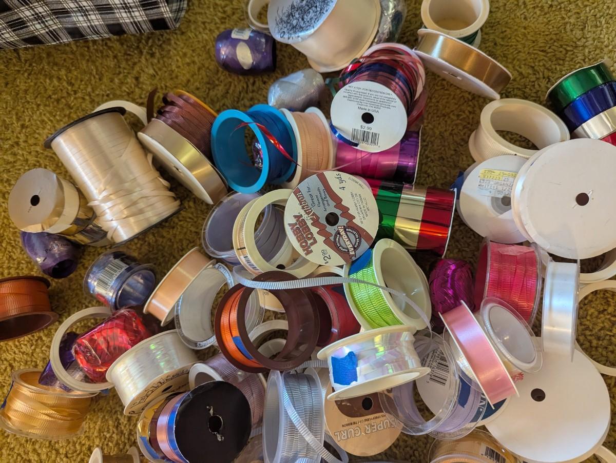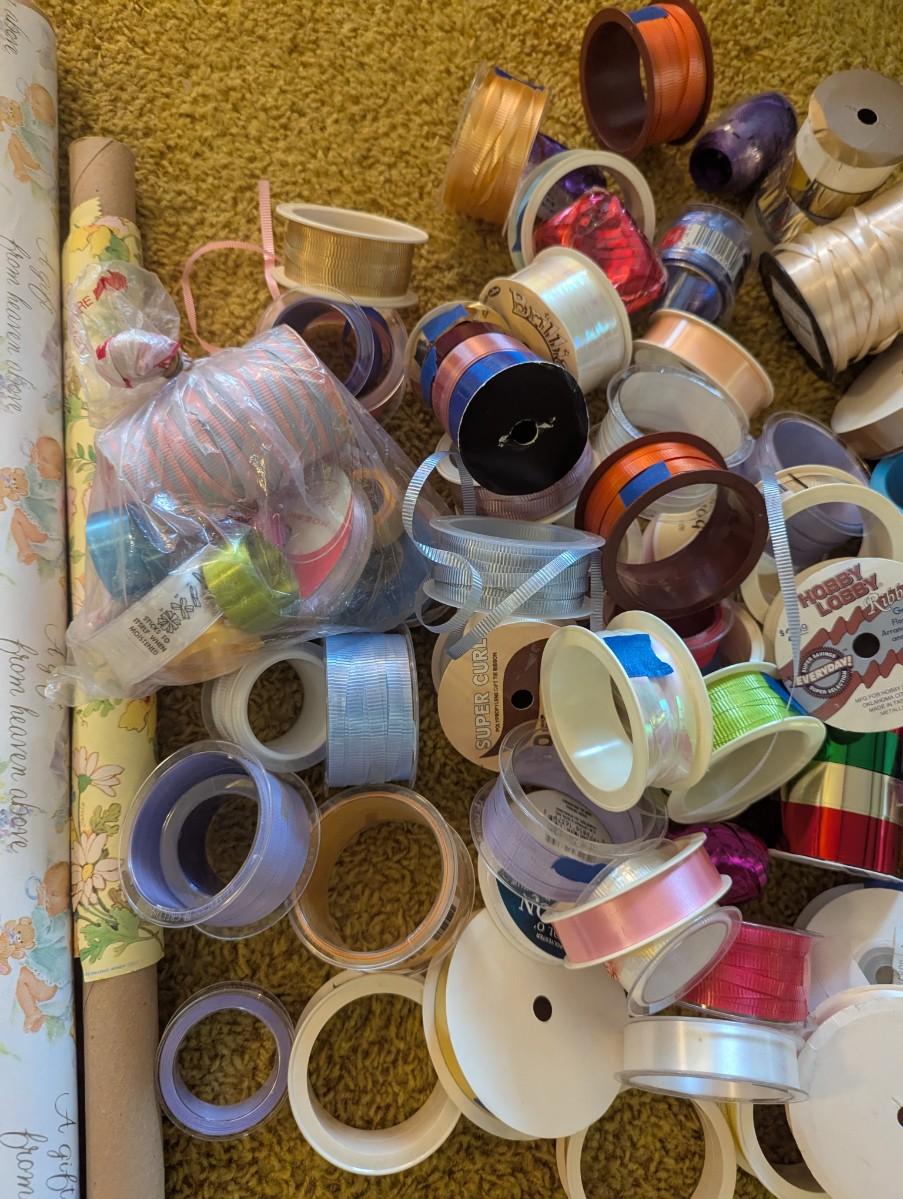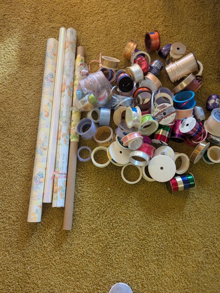 Wrapping paper, multiple colors of ribbon just perfect for making that package beautiful.