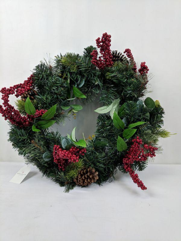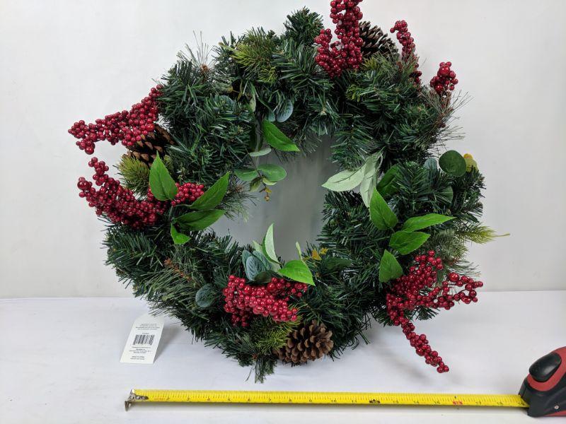 Wreath, Red Berries & Pine Cones, A Few Berries are Broken - New