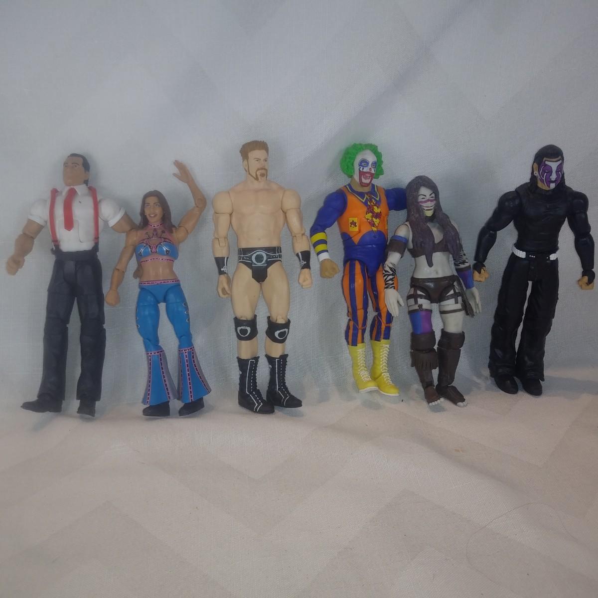 This auction lot is for a Collection of Wrestler Figures - Lot A. This collection is of 6 wrestlers, all pre-2017. All have jointed limbs and are in very good shape. Quite a ghoulish gathering and ready for your shelf or display case.