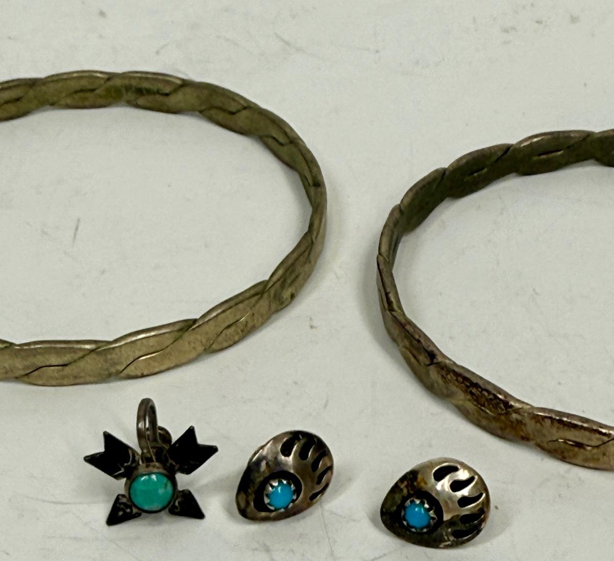 Vintage Jewelry lot - 2 bracelets, 1 pair of earrings, 1 single earring Turquoise & Silver-tone