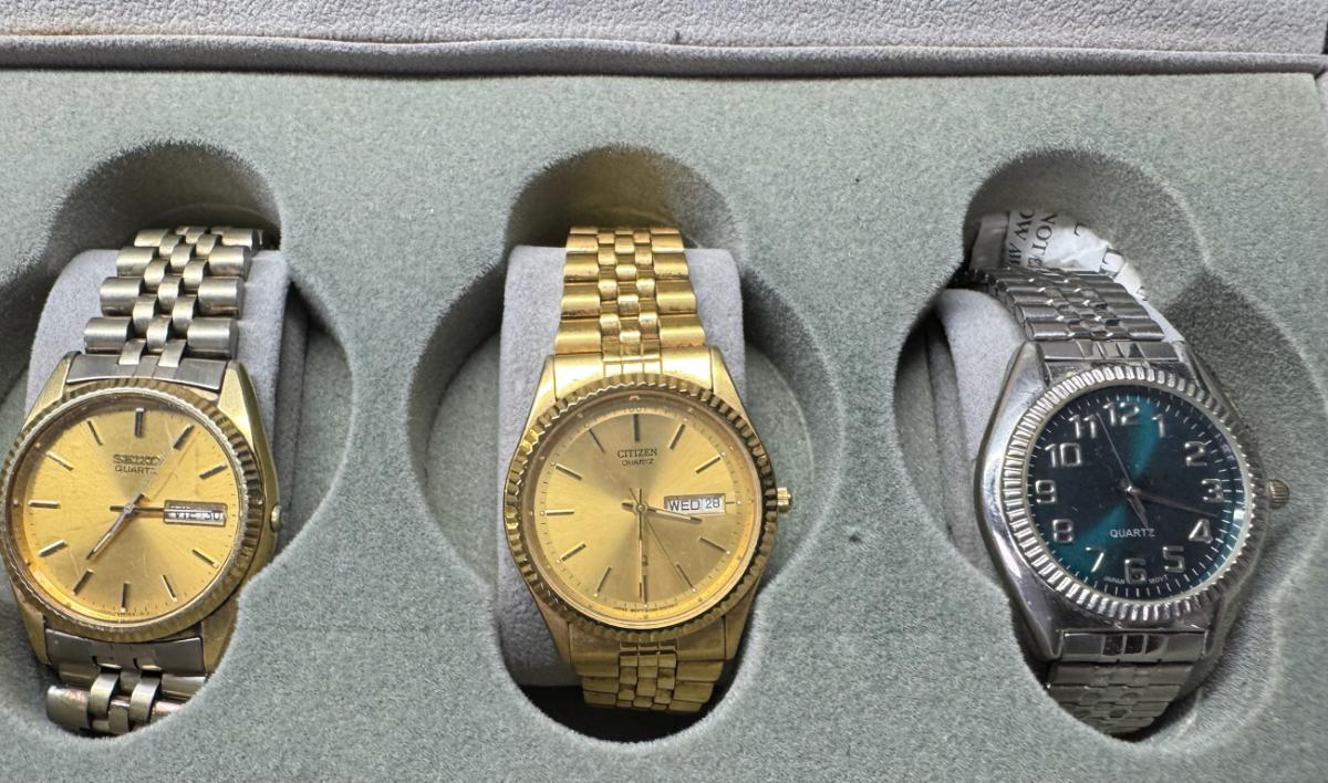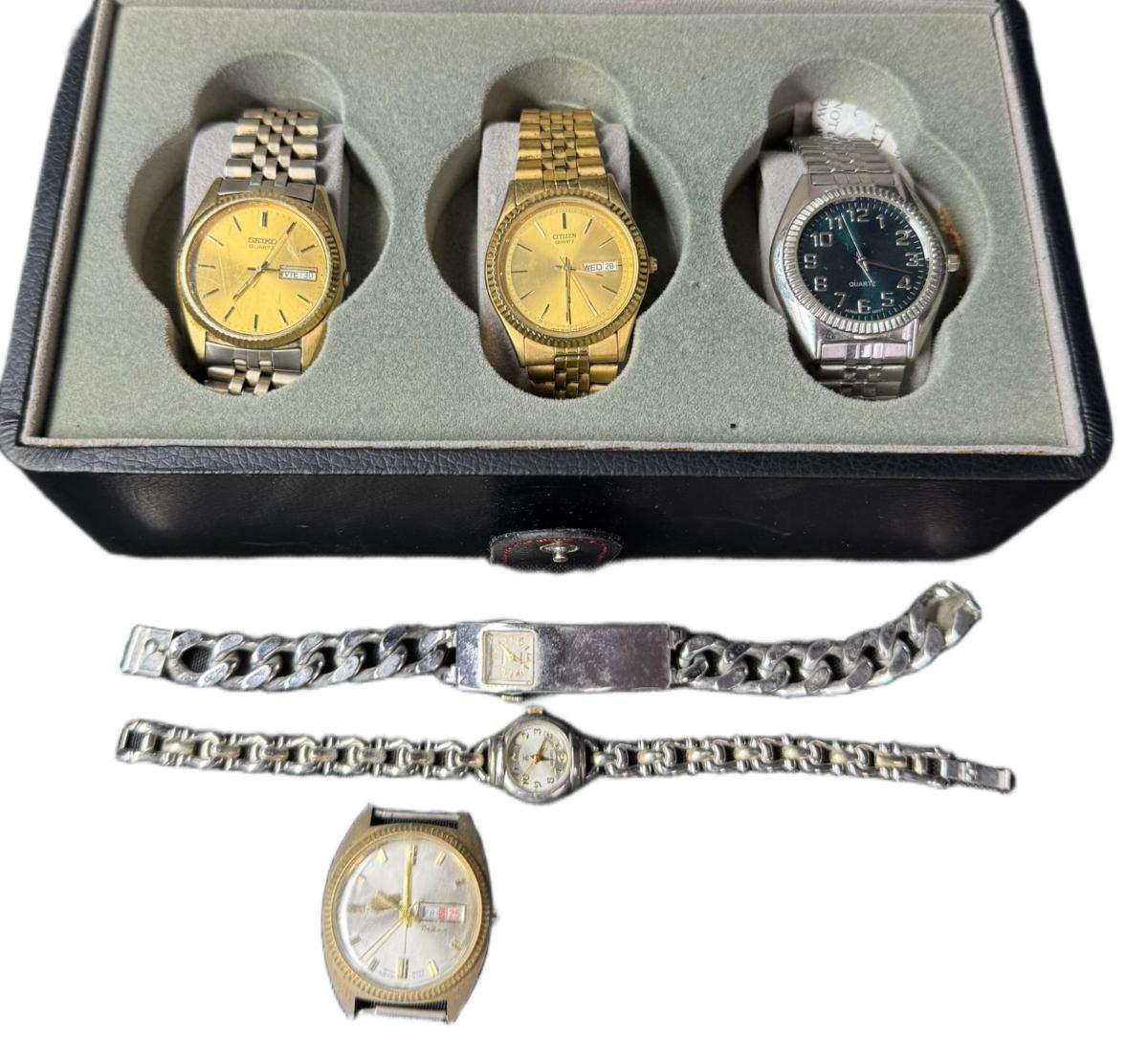 Includes Seiko, Citizen, Wilson, and more. Total of six watches. Also includes box. Age related wear. Not tested. [JP]