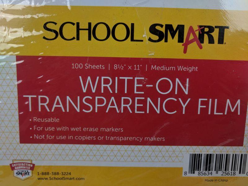 Write-On Transparency Film, Pack of 100, Reusable - New