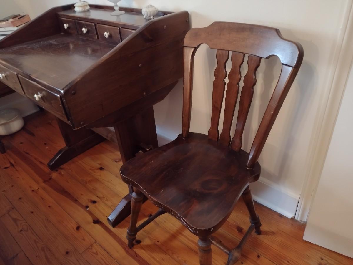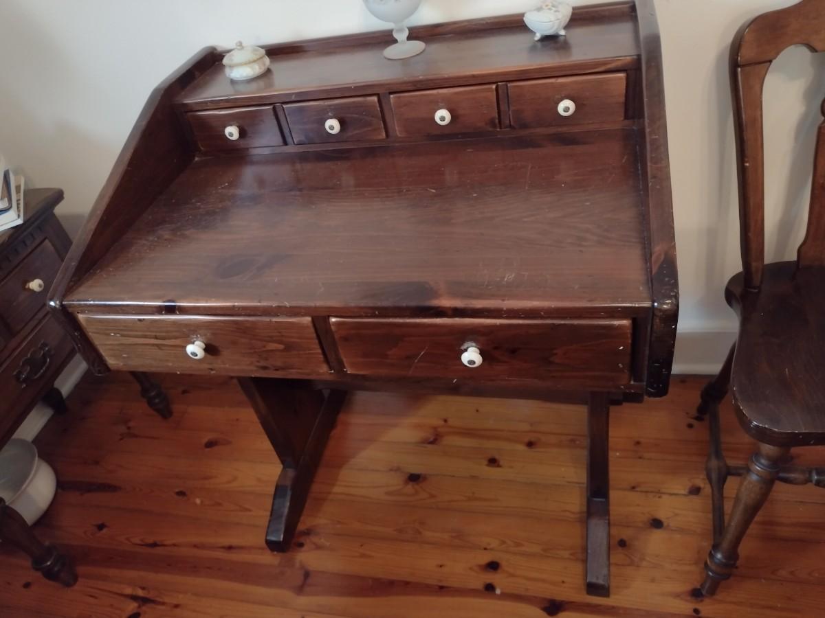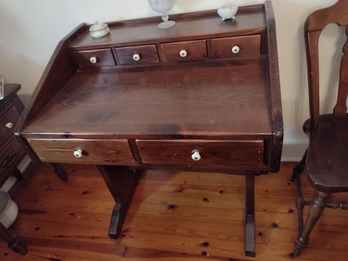Solid Wood Vintage Walnut Writing Desk includes Chair (No Contents)