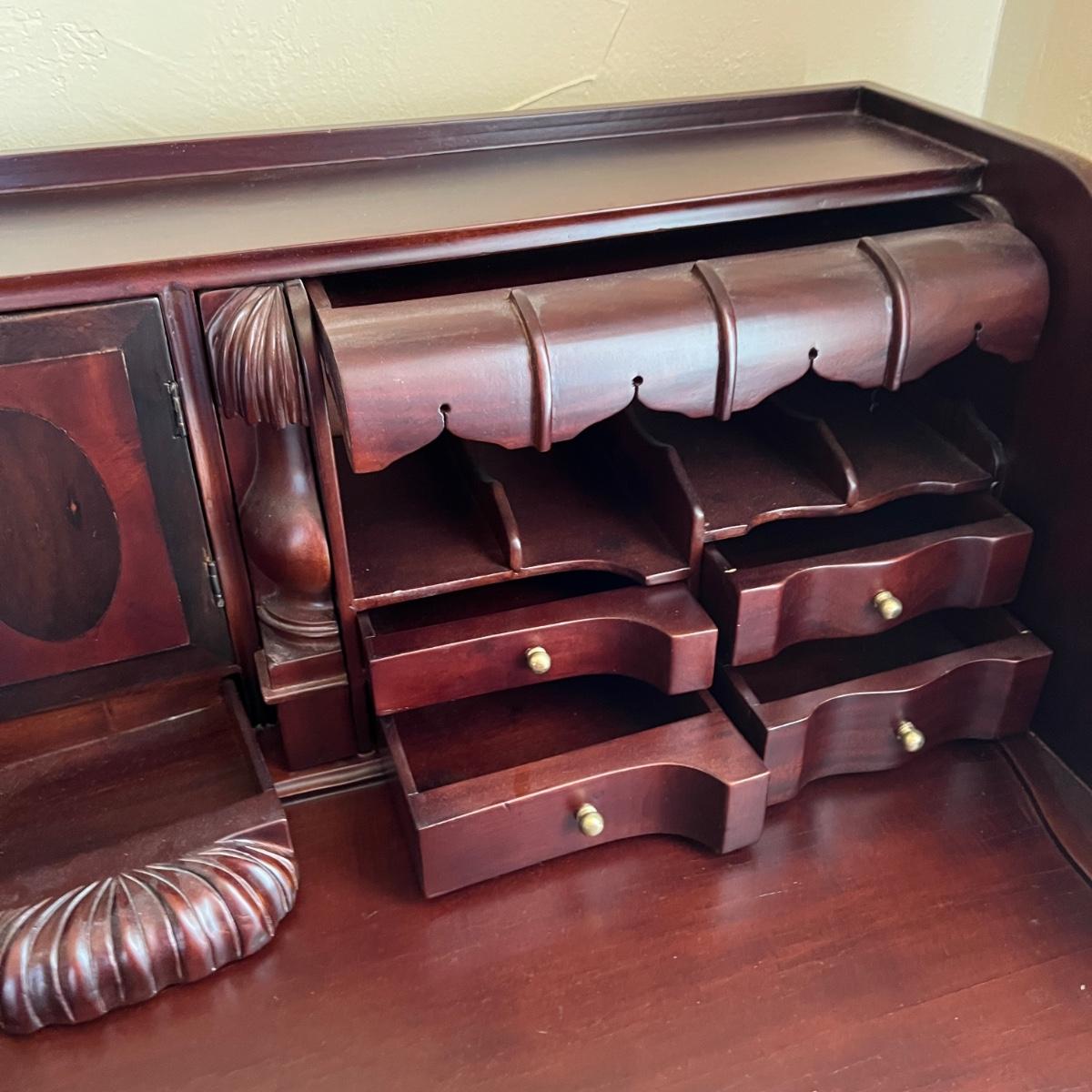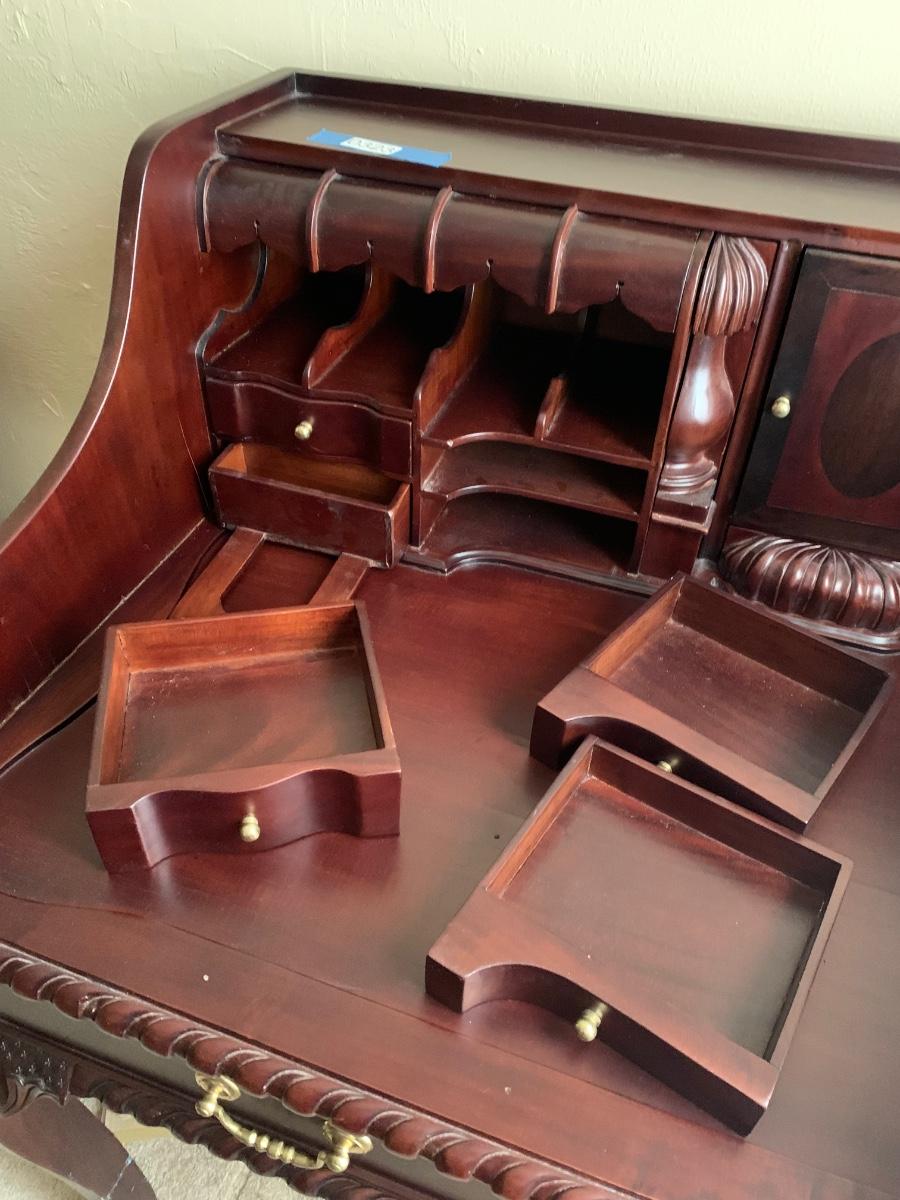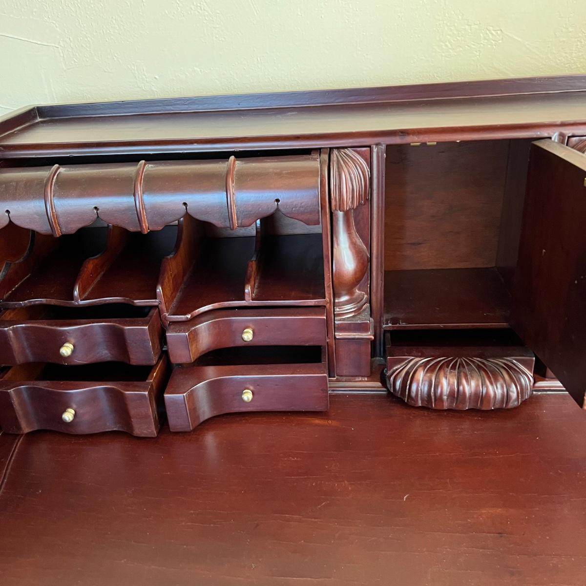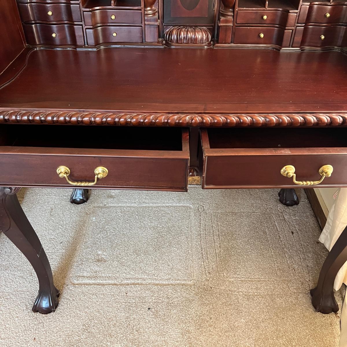 Chippendale Style Solid Wood Desk w/ Hidden Drawer