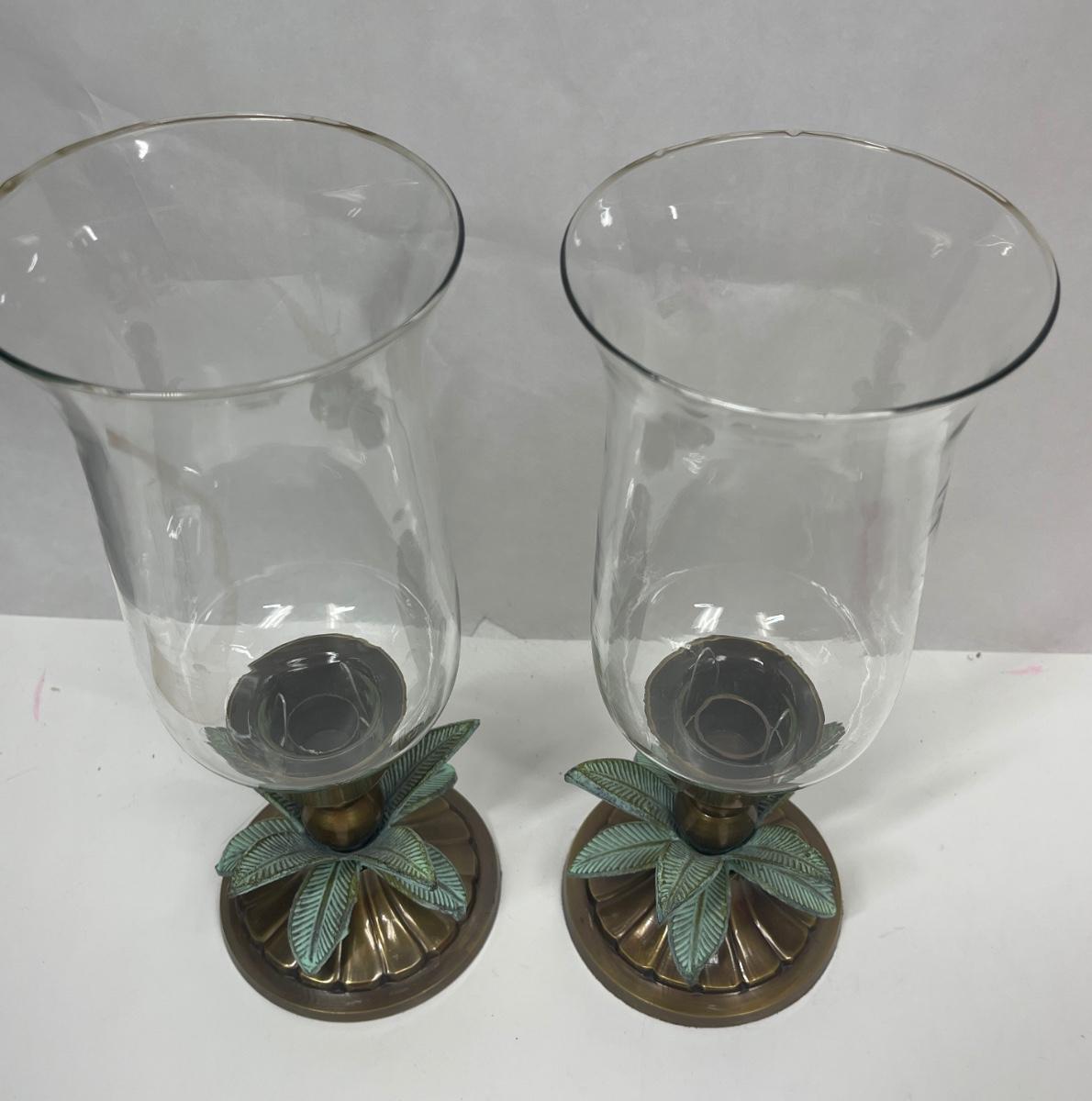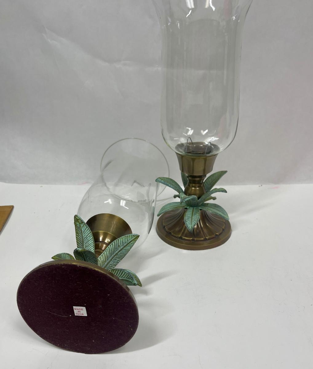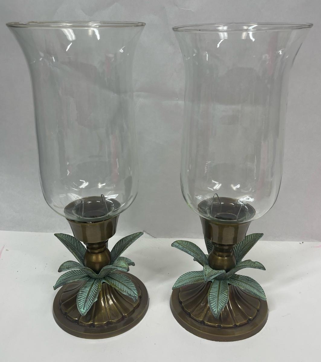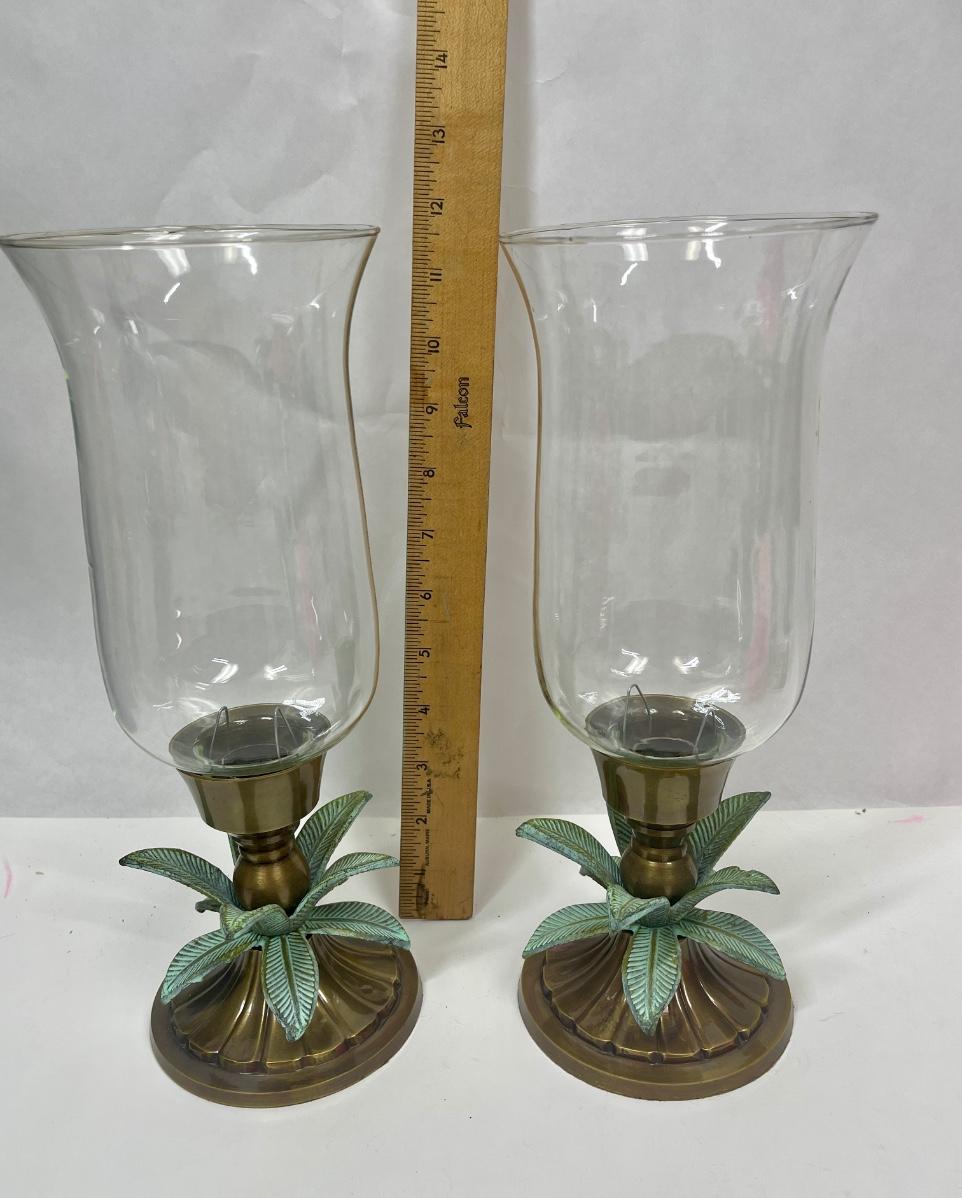 Hurricane Lamps with Metal Bases Palm Leaf decor Tropical