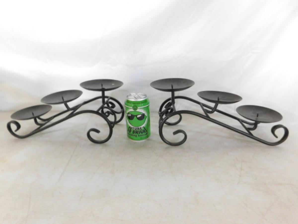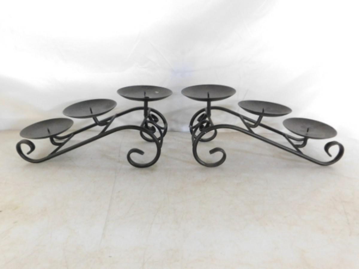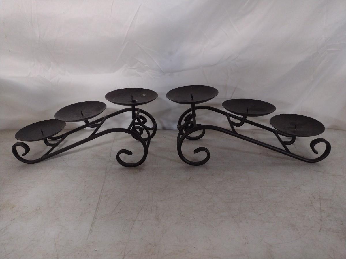 Pair of 3 Plate Wrought Metal Cascading Candle Stands
