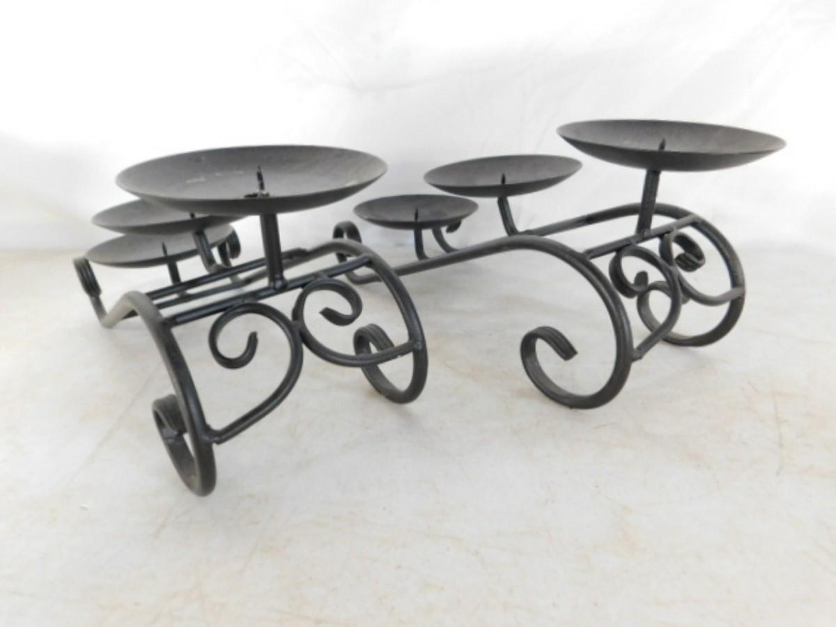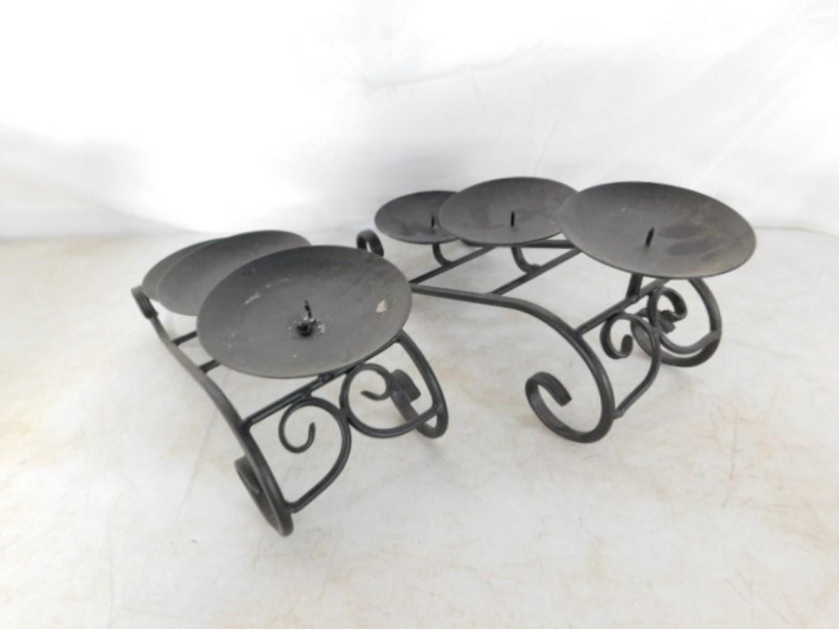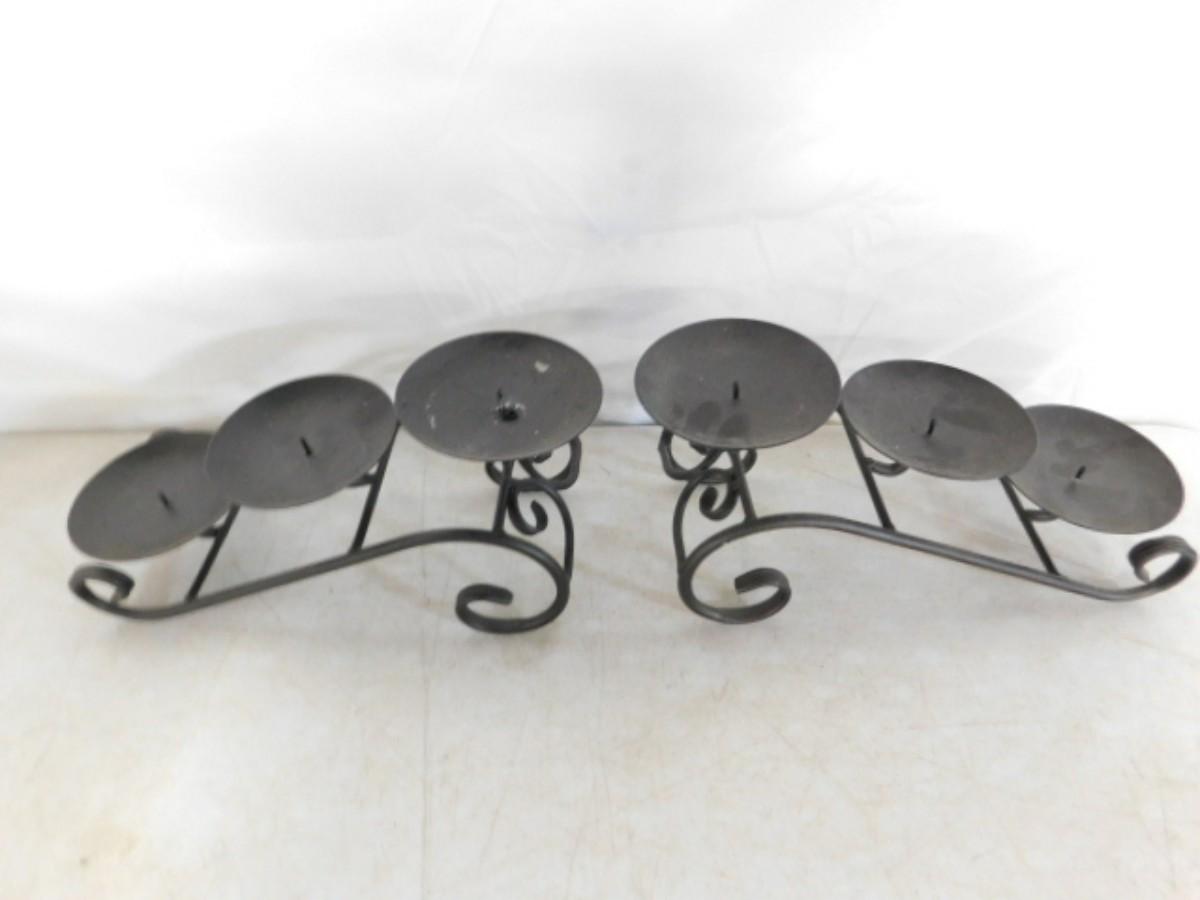Pair of 3 Plate Wrought Metal Cascading Candle Stands
