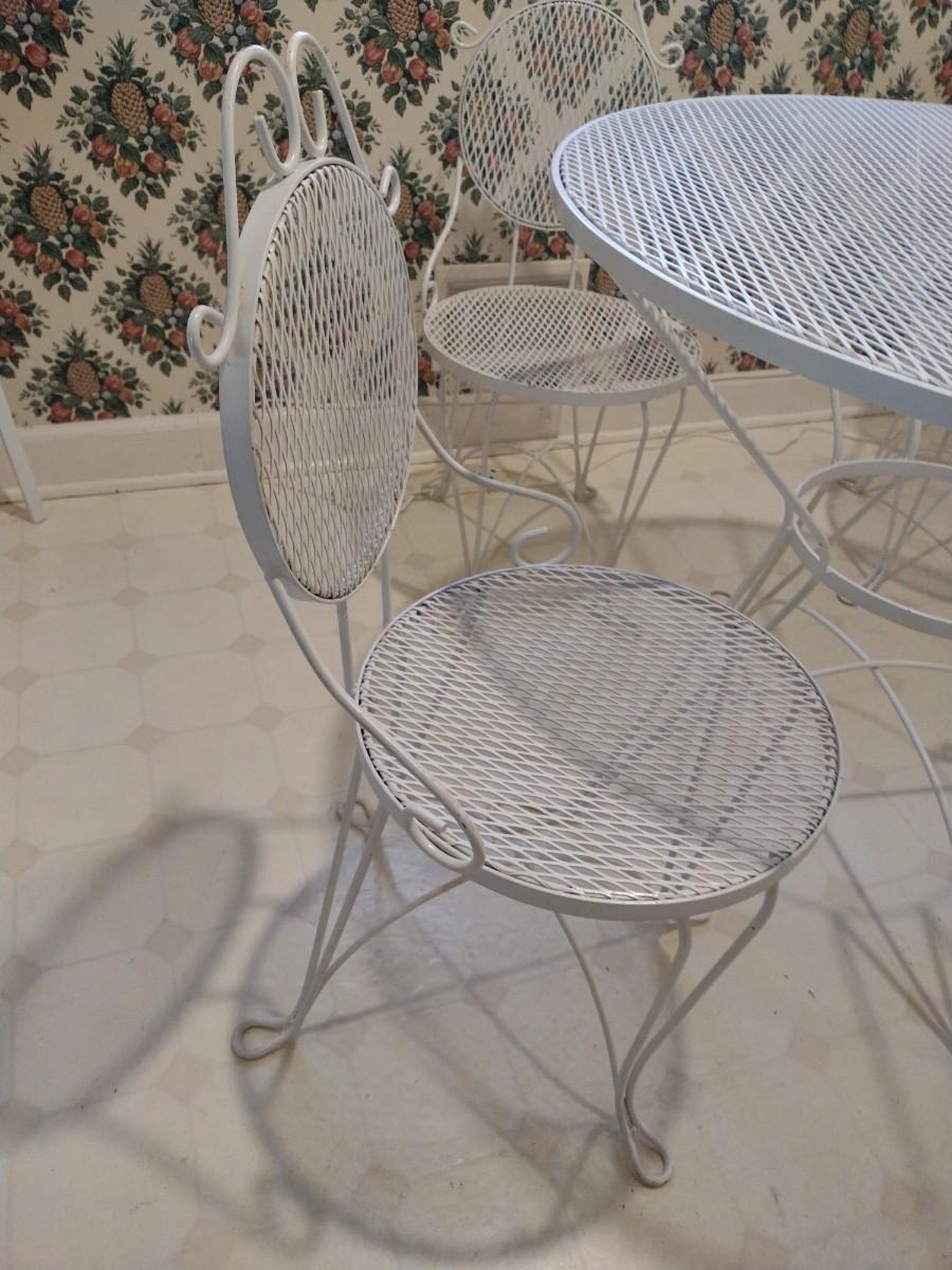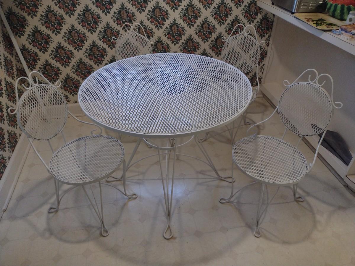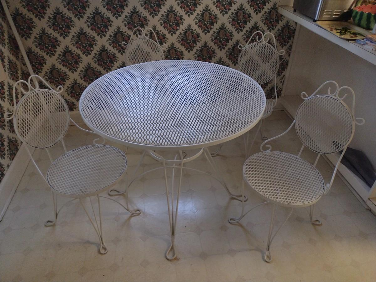 Beautiful Wrought Metal Garden or Patio Four Chairs and Table Set upstairs item. Bring assistance to remove from home
