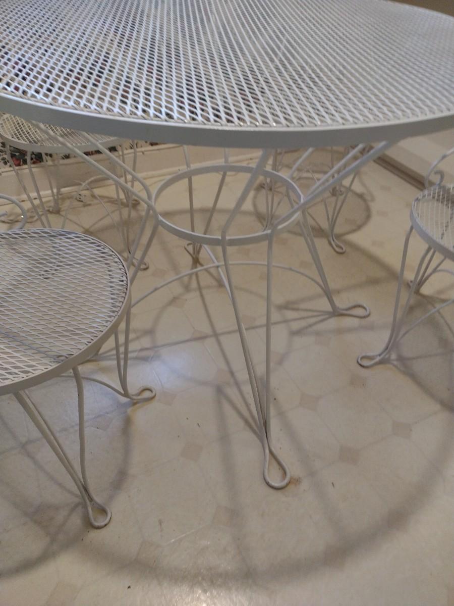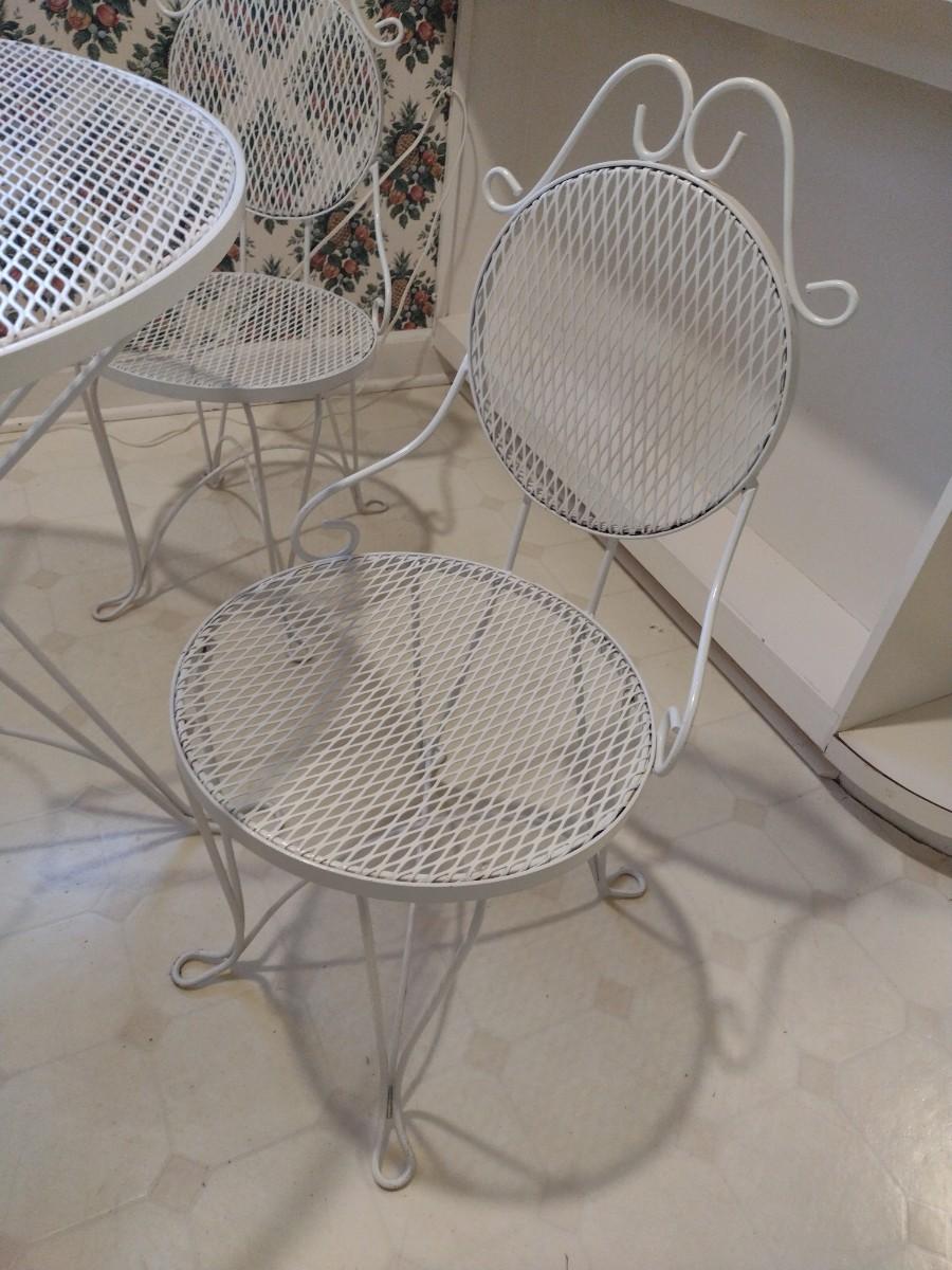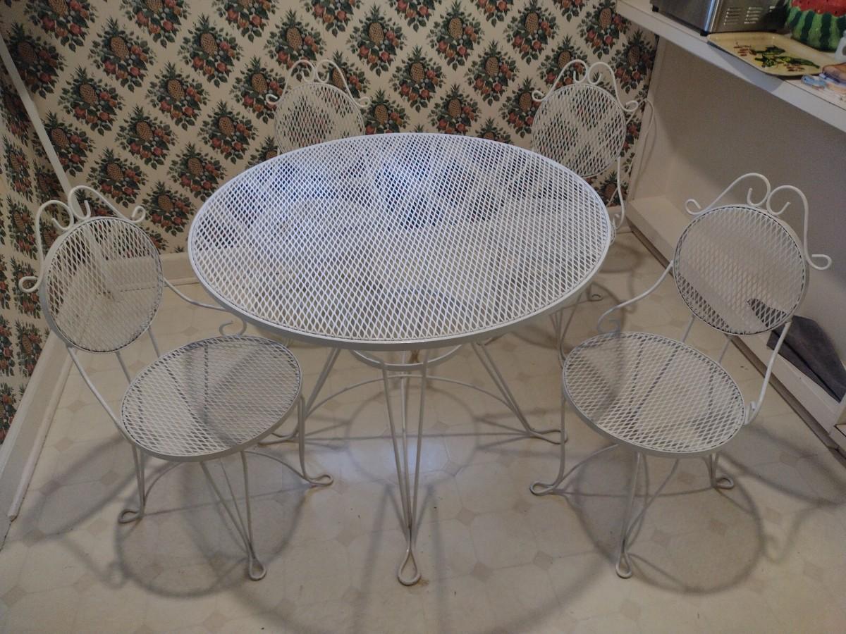Beautiful Wrought Metal Garden or Patio Four Chairs and Table Set upstairs item. Bring assistance to remove from home