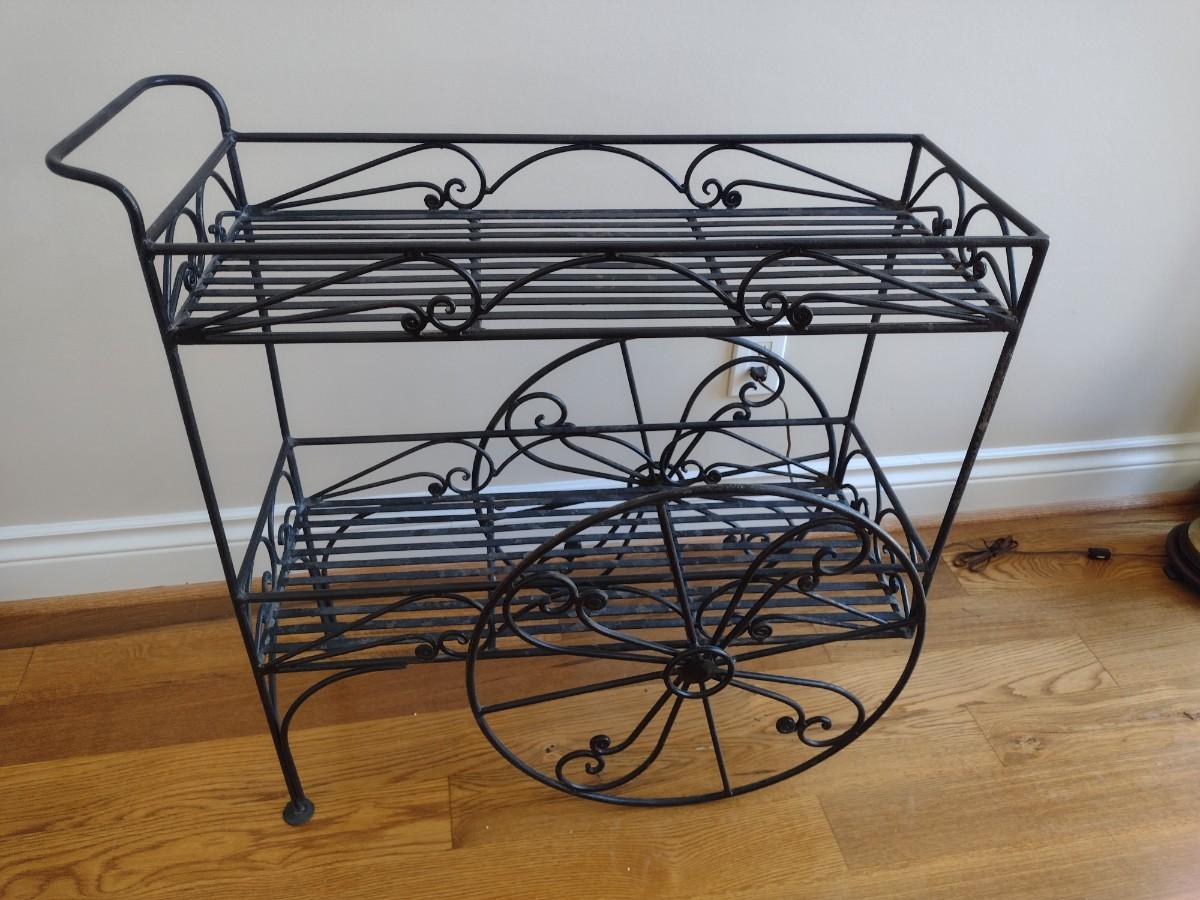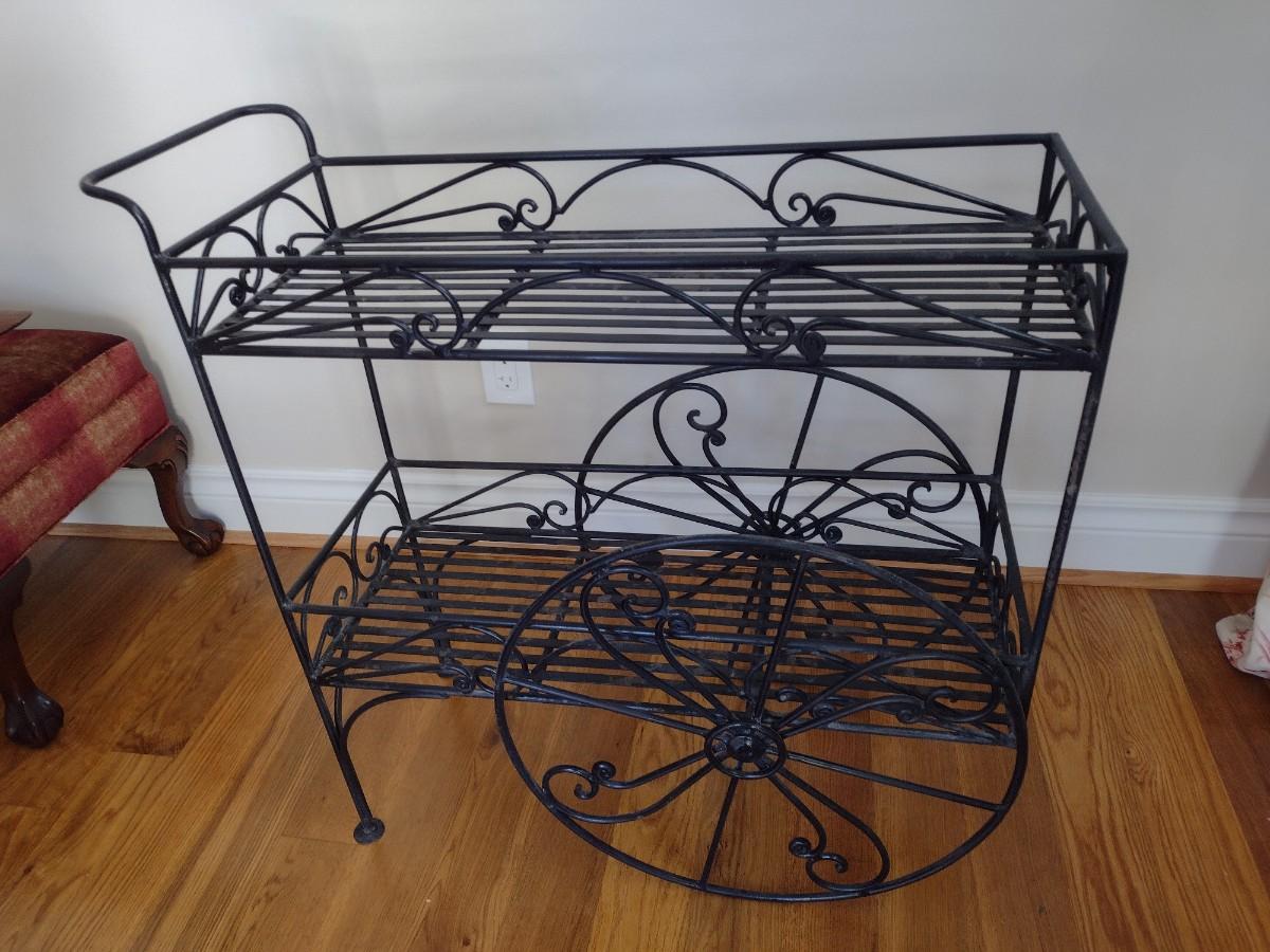 Wrought Metal Rolling Tea Cart or Plant Stand