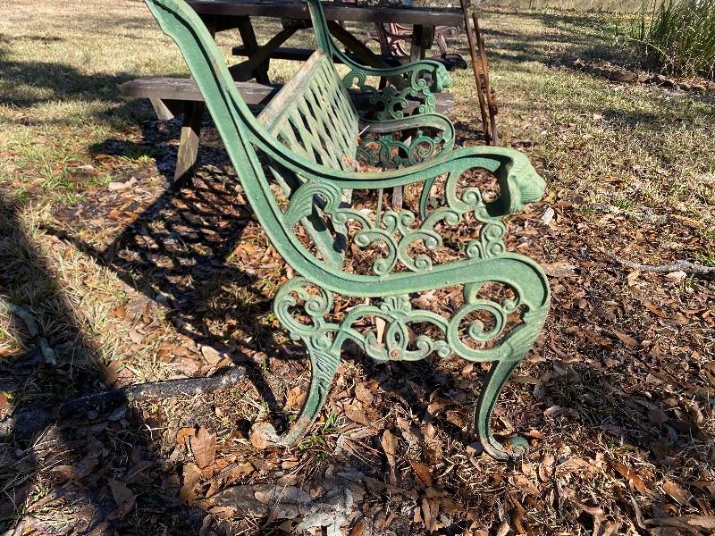 "Make Your Own" Wrought Iron Bench Skeleton  (Green/Lion)