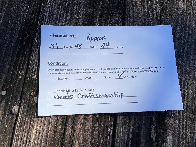 ** We DO NOT assist in the moving and loading of large items that you purchase. You MUST bring appropriate moving materials necessary to safely remove the item from the home, Hand Truck, Dollies, Blankets, Tools and of course the most important thing "Muscle".. We will not allow you to remove an item without proper equipment and help. NO EXCEPTIONS!!