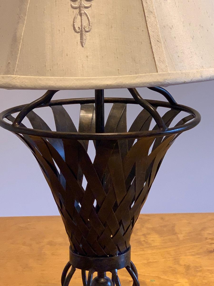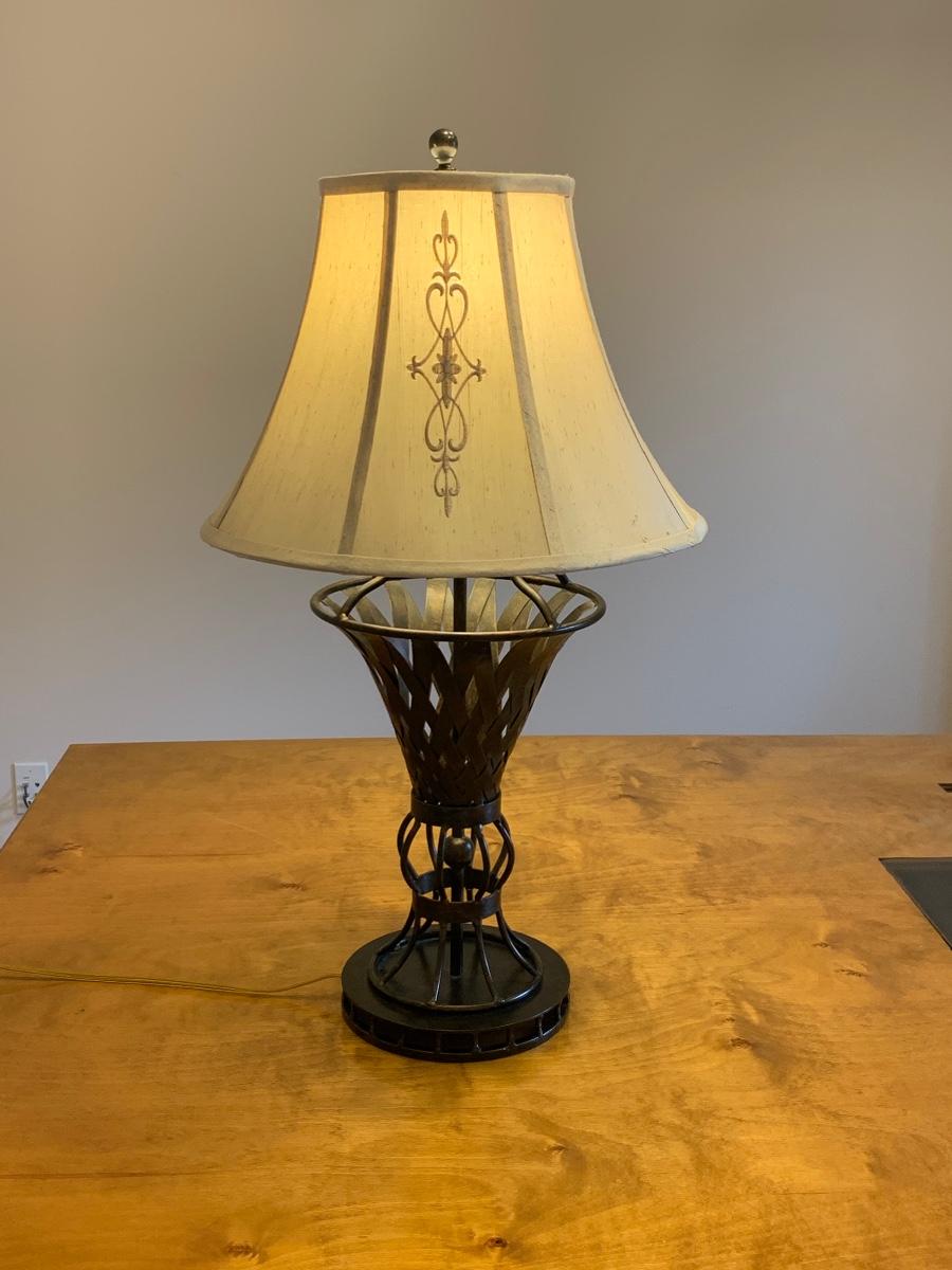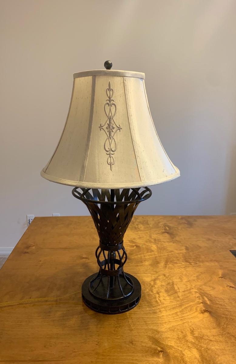 Wrought Iron Bronze Look Lamp with Cream Shade