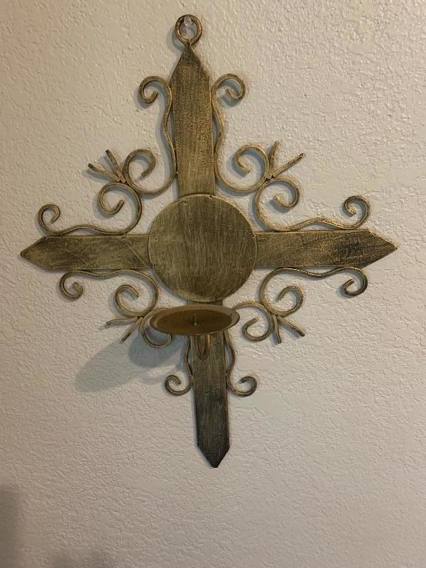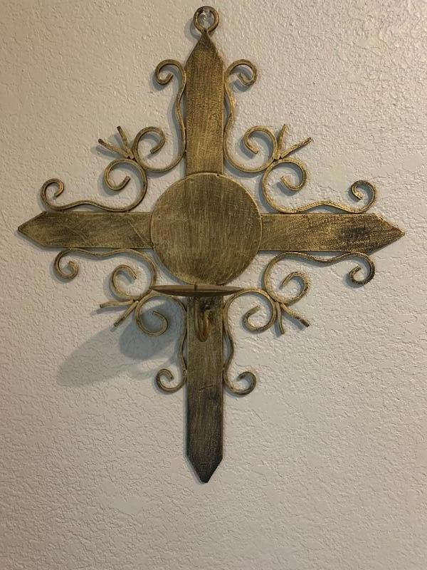 Wrought Iron Cross Crucifix wall candle holder. 20in tall x 16in wide