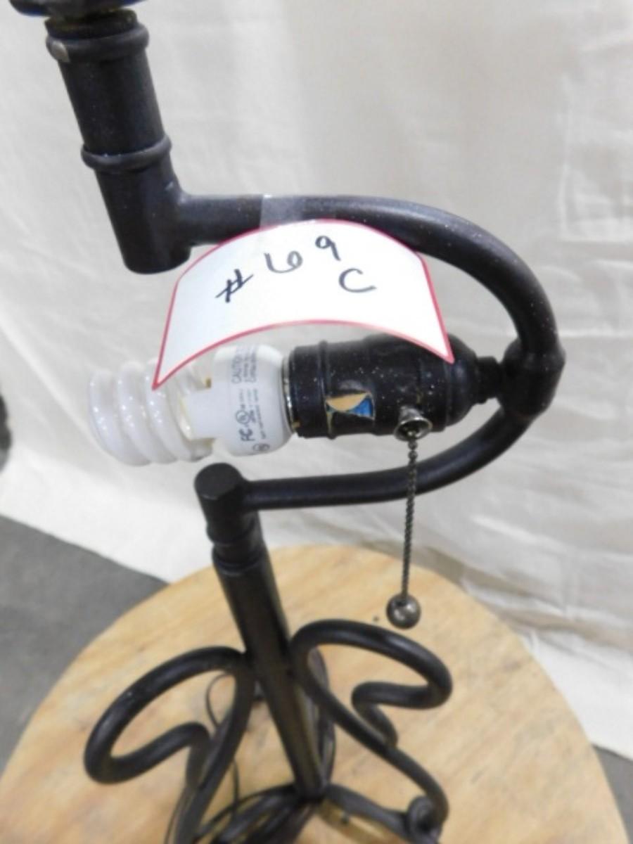 Wrought Iron Decorative Table Lamp Choice C. Has pull switch. Expect some wear or scratches to the finish. Shipping option available via freight or local mover at Buyer's expense. Buyer must have all shipping scheduled within the stated dates and times of pickup. Recommended local mover is Beaty Bros. Moving 828-201-2982
