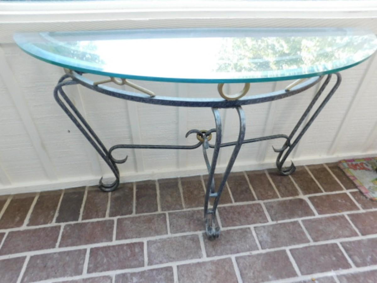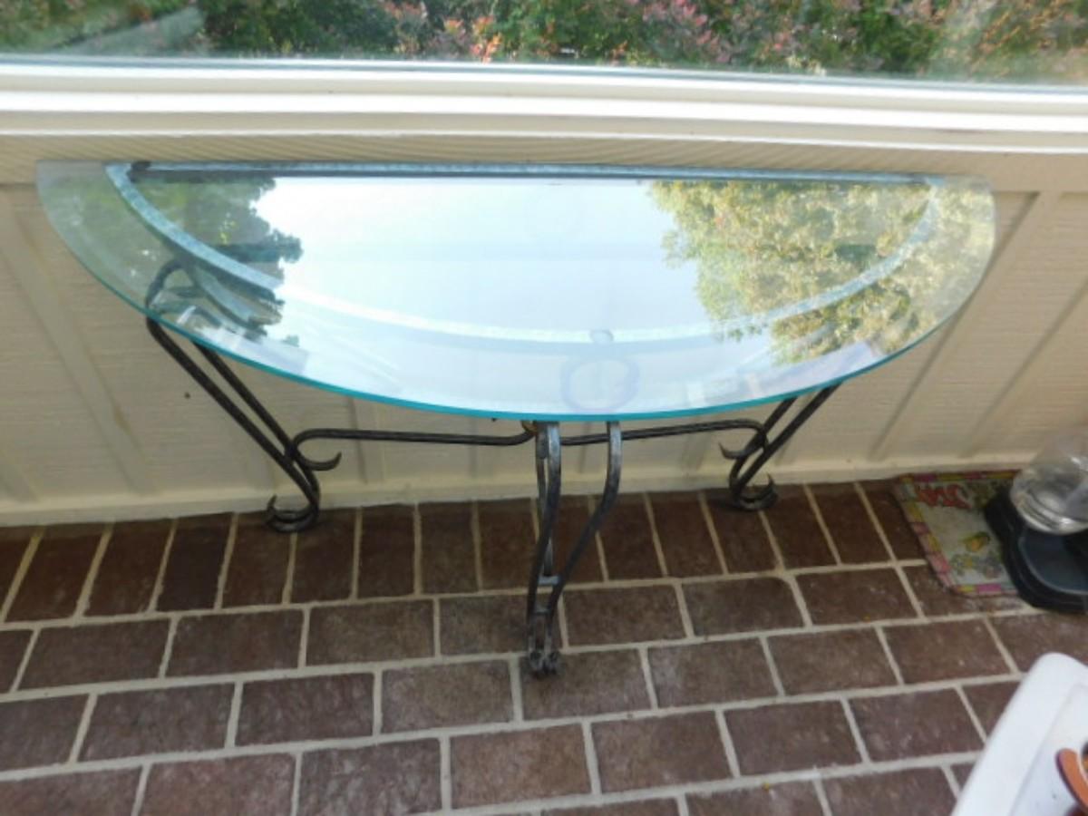 Wrought Iron Frame Demilune Patio Table with Glass Top