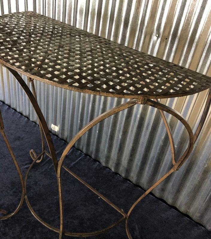 Here is a decorative vintage wrought iron half round table..as shown...30 x 14 x 32" ....