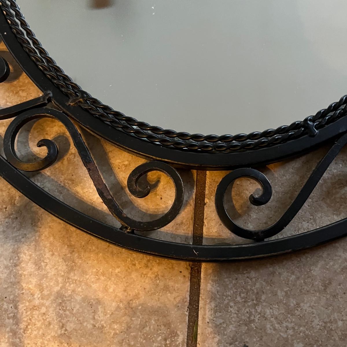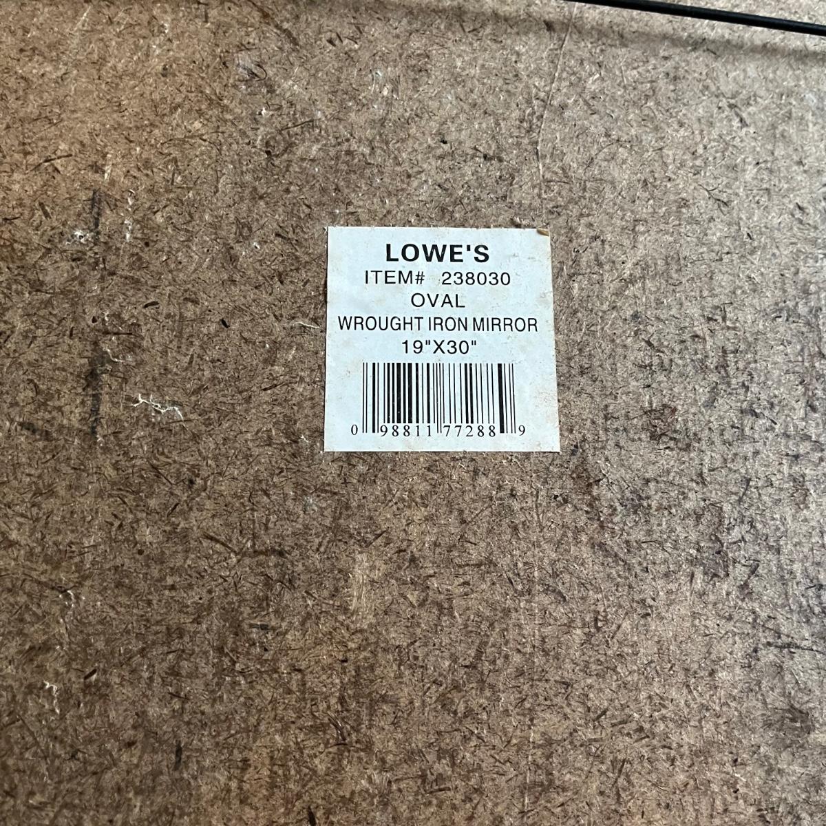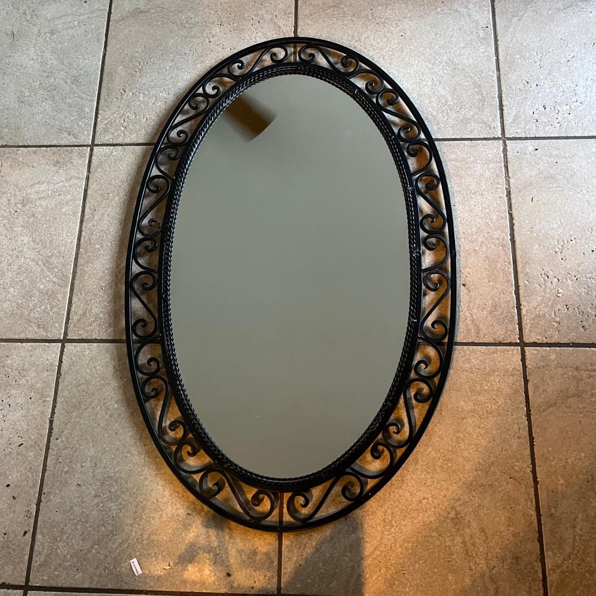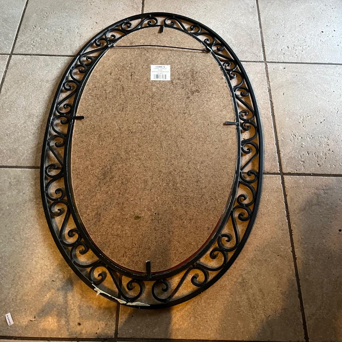 Lot includes a oval wrought iron mirror that measures 19” x 30”.