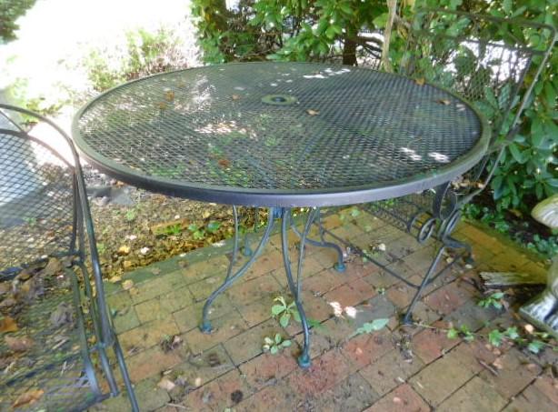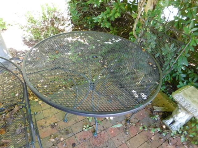 Wrought Iron Outdoor Round Table with Center Punch for Umbrella 42"x30"