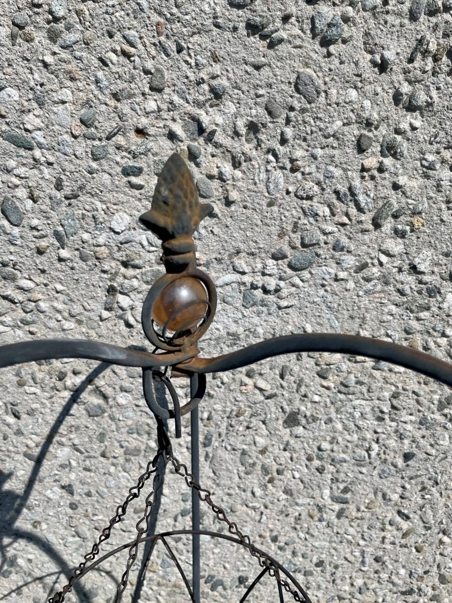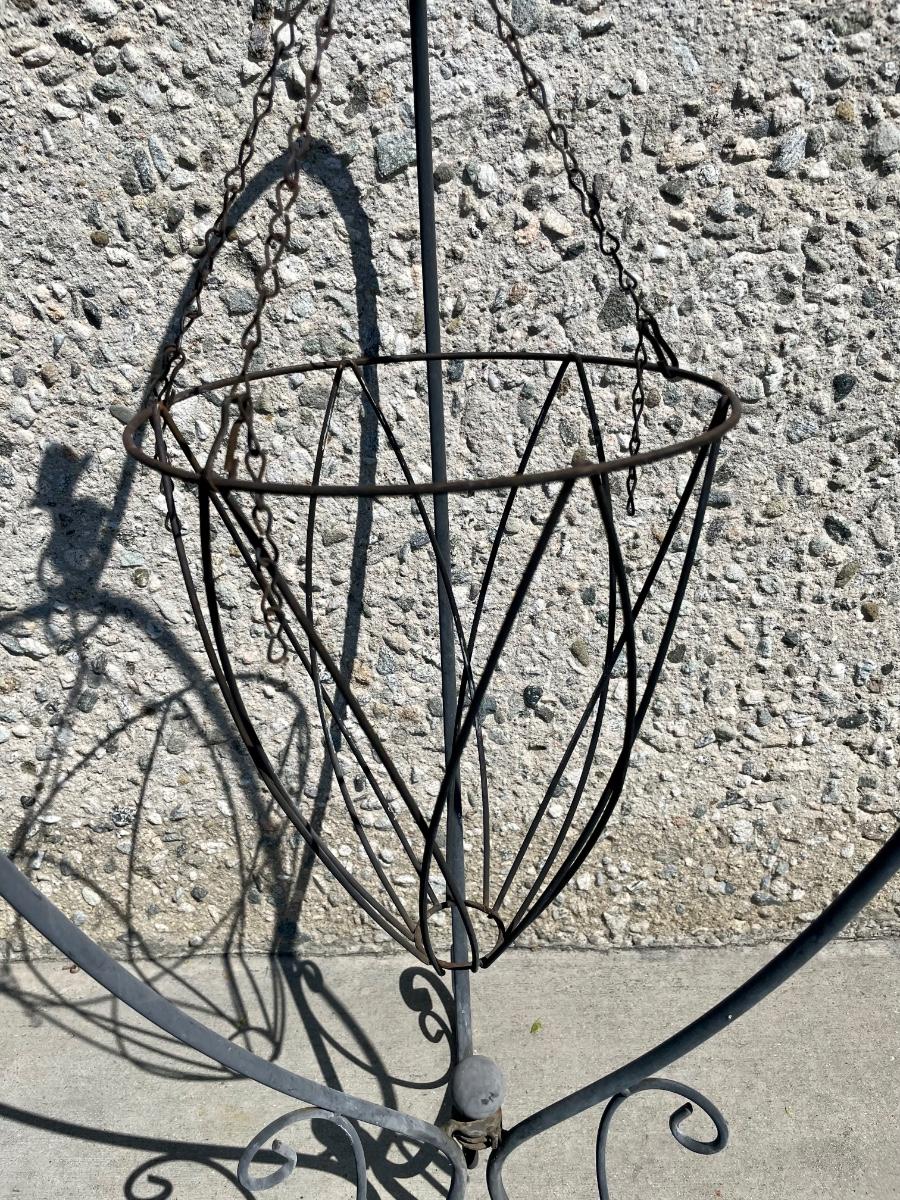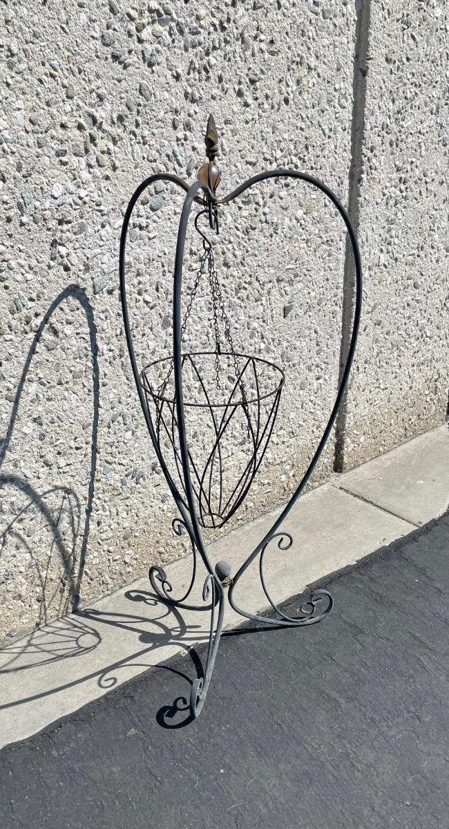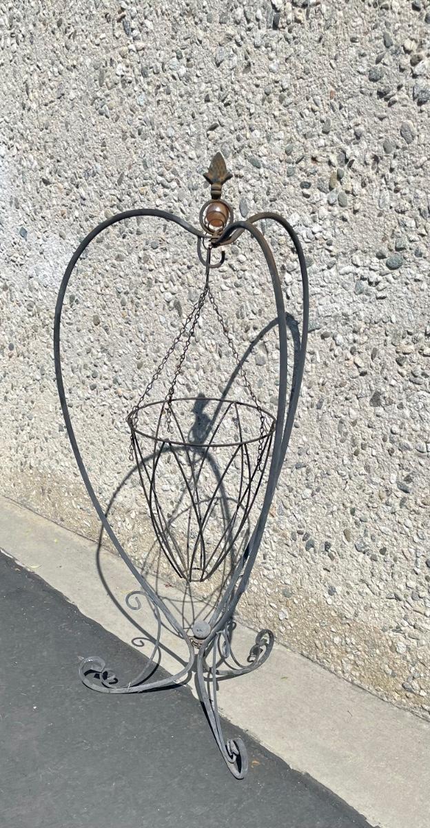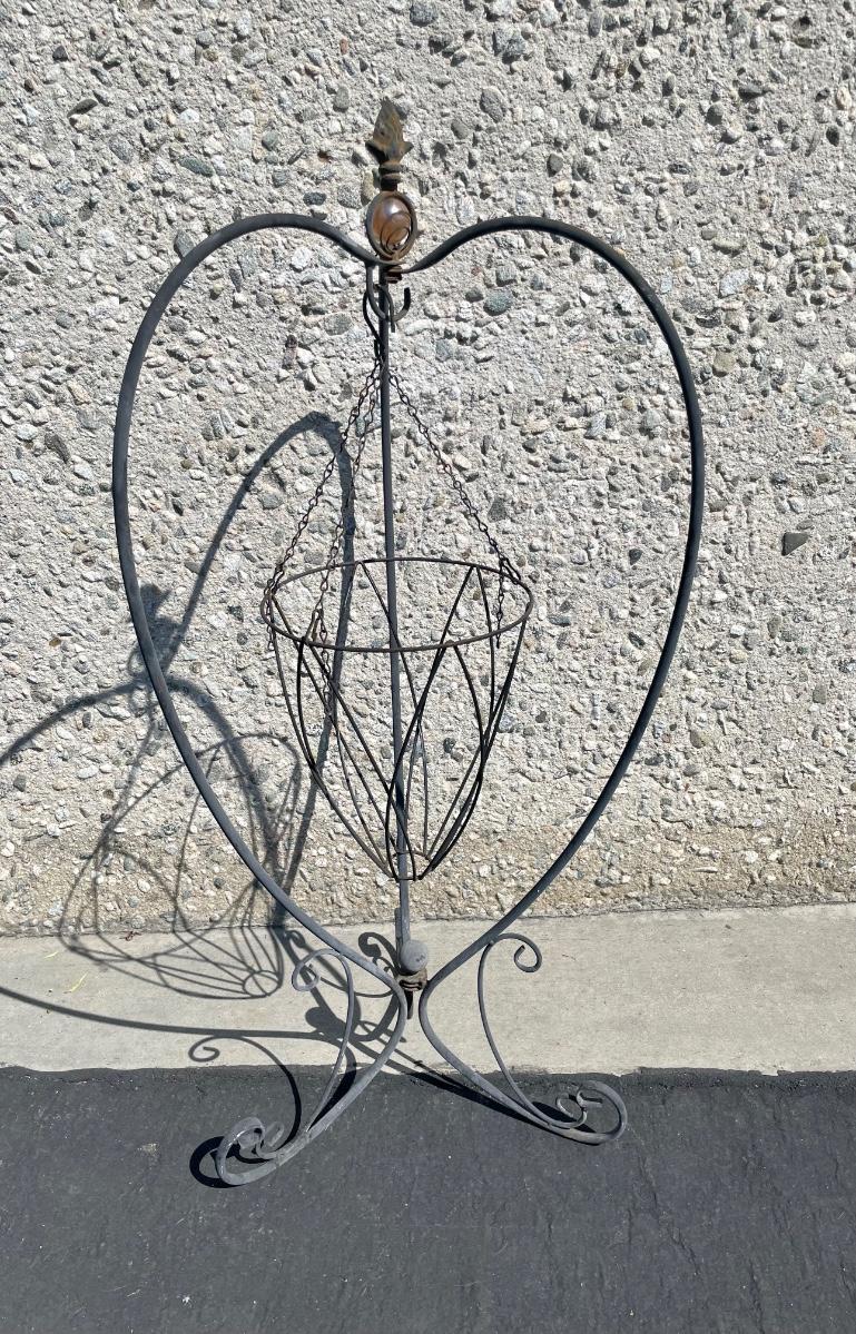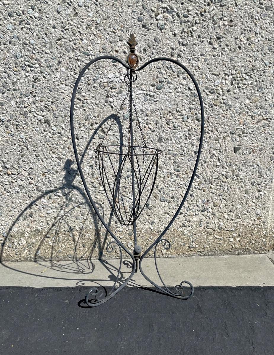 Wrought Iron Heart Shaped Hanging Basket Plant Stand Garden Yard Patio Art. In good weathered condition.