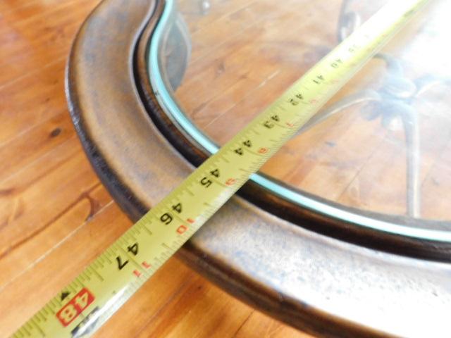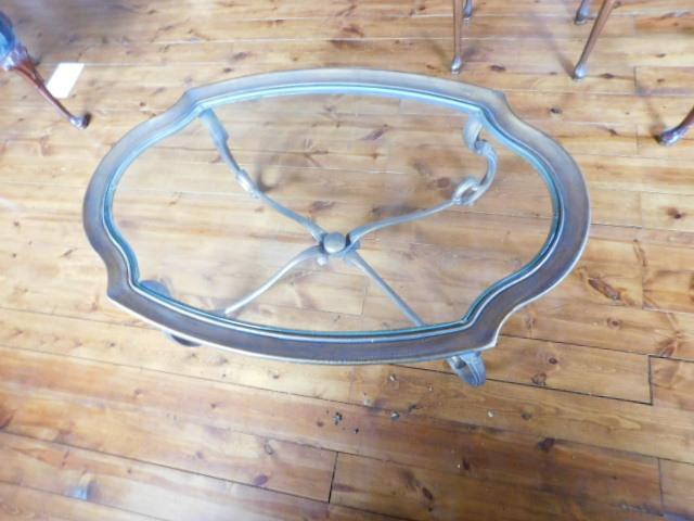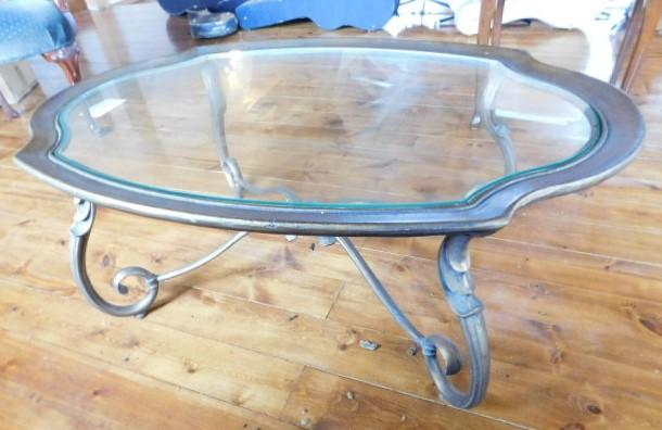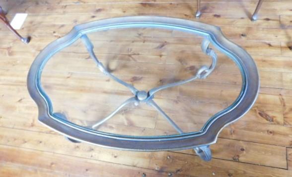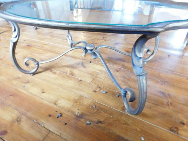 Wrought Iron Provincial Design Glass Top Table 46"x30"x18" upstairs item. Heavy