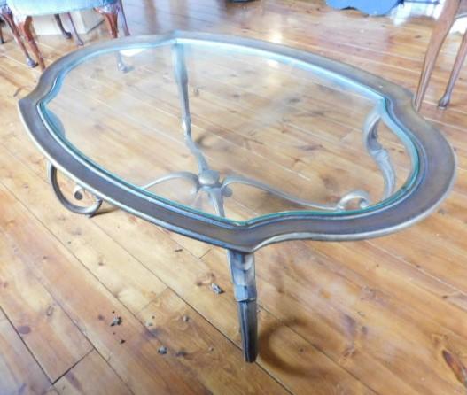 Wrought Iron Provincial Design Glass Top Table 46"x30"x18"