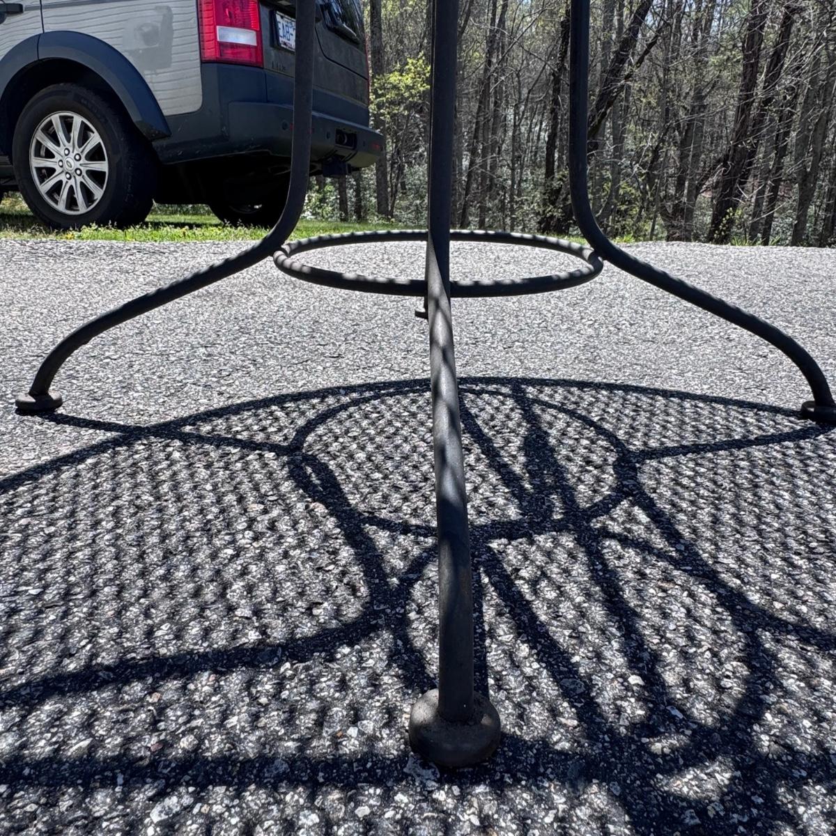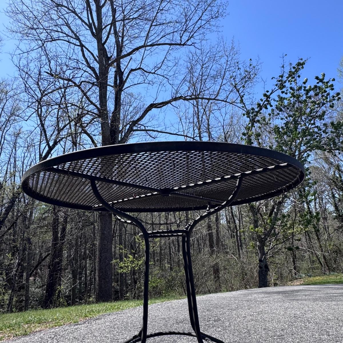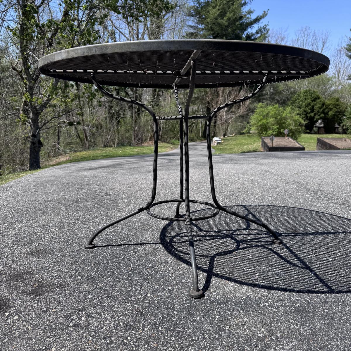 This lot includes one round wrought iron patio table. The table measures 41”D x 29”H. Local pickup only. Winning bidder must bring assistance to help move and load this item due to its weight and/or size.