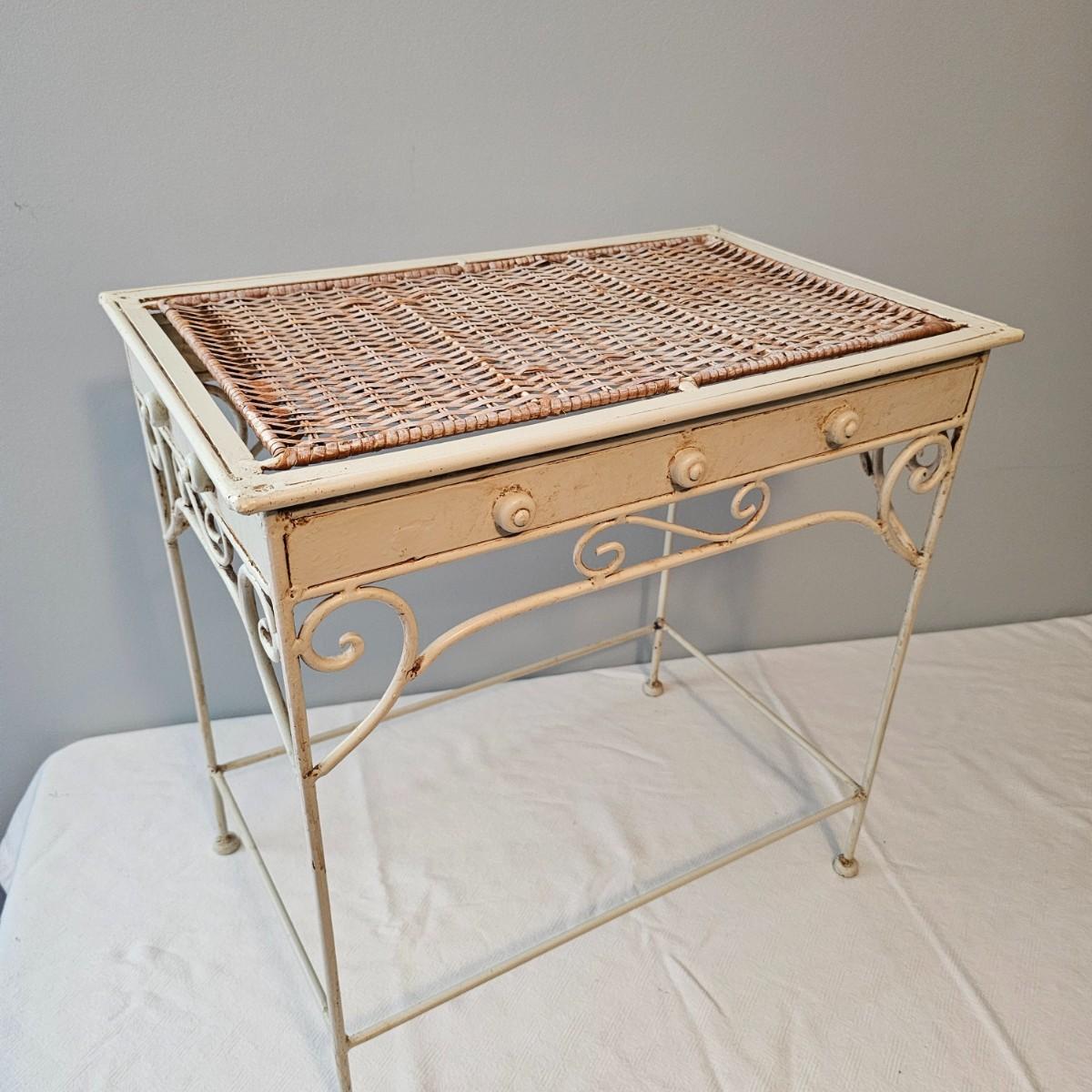 Wrought Iron Table, Caddy & Oval Clock. (UB-JS)