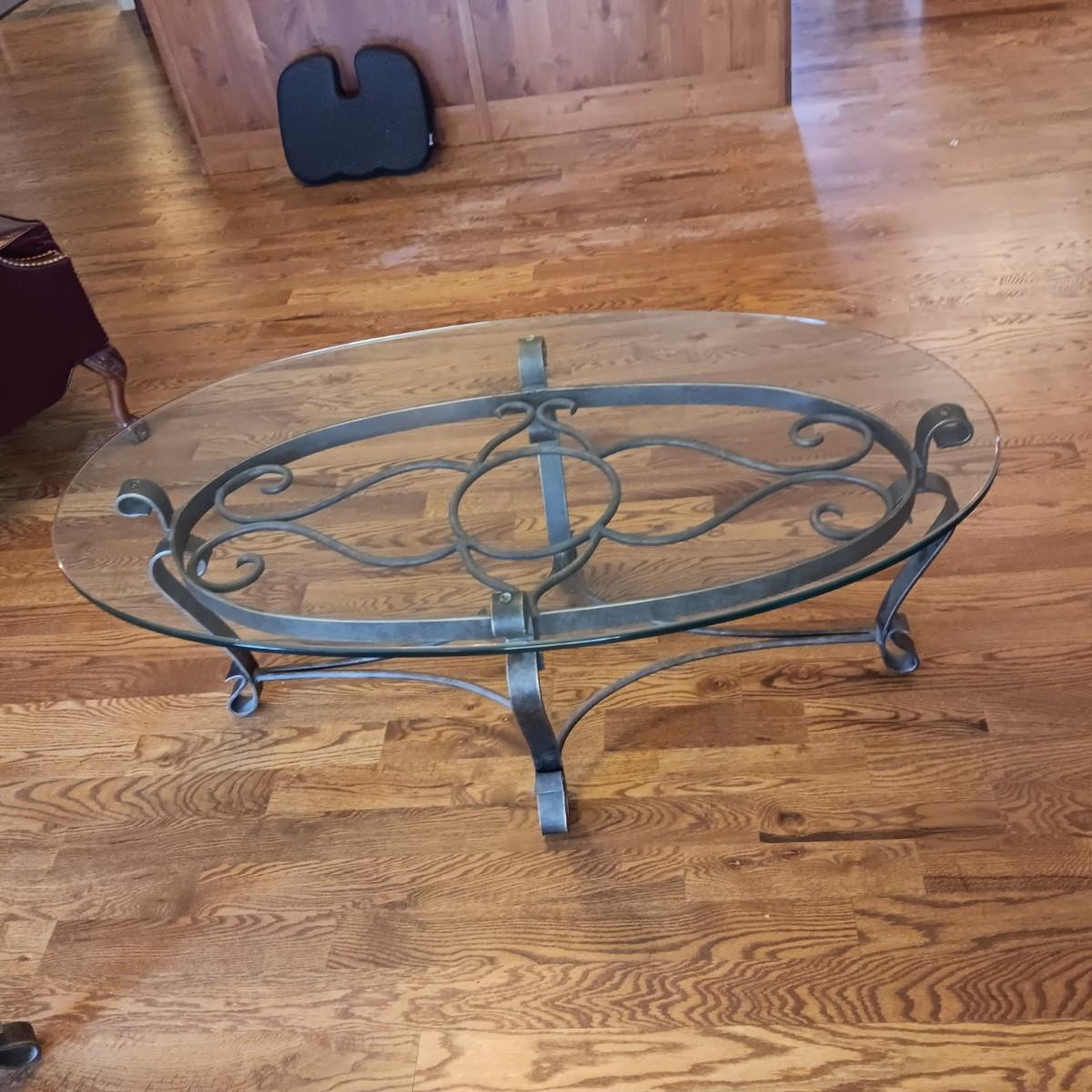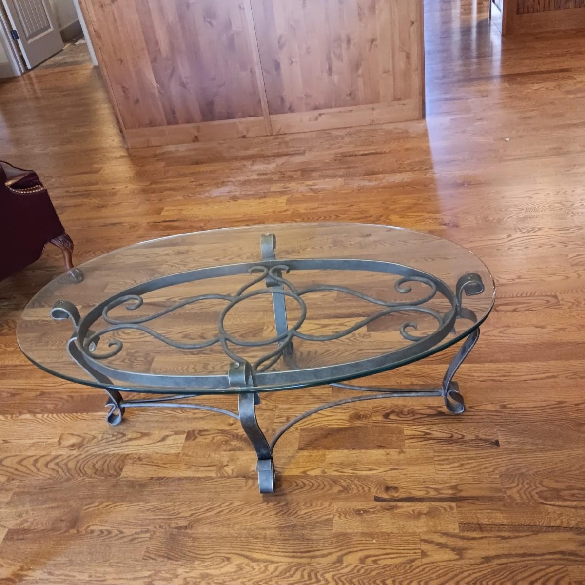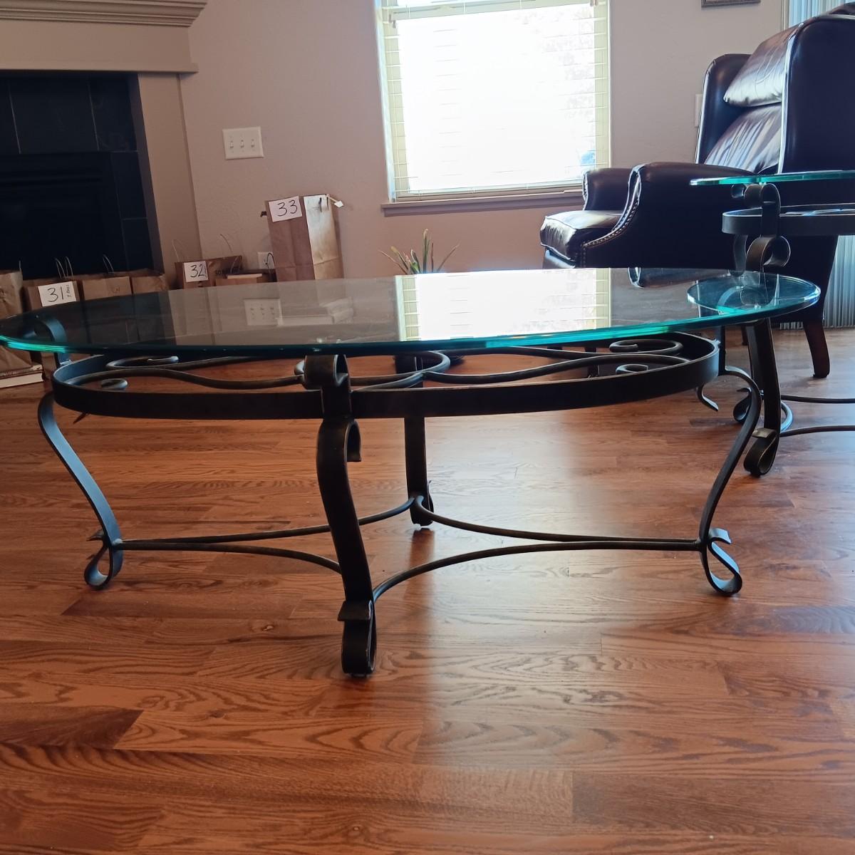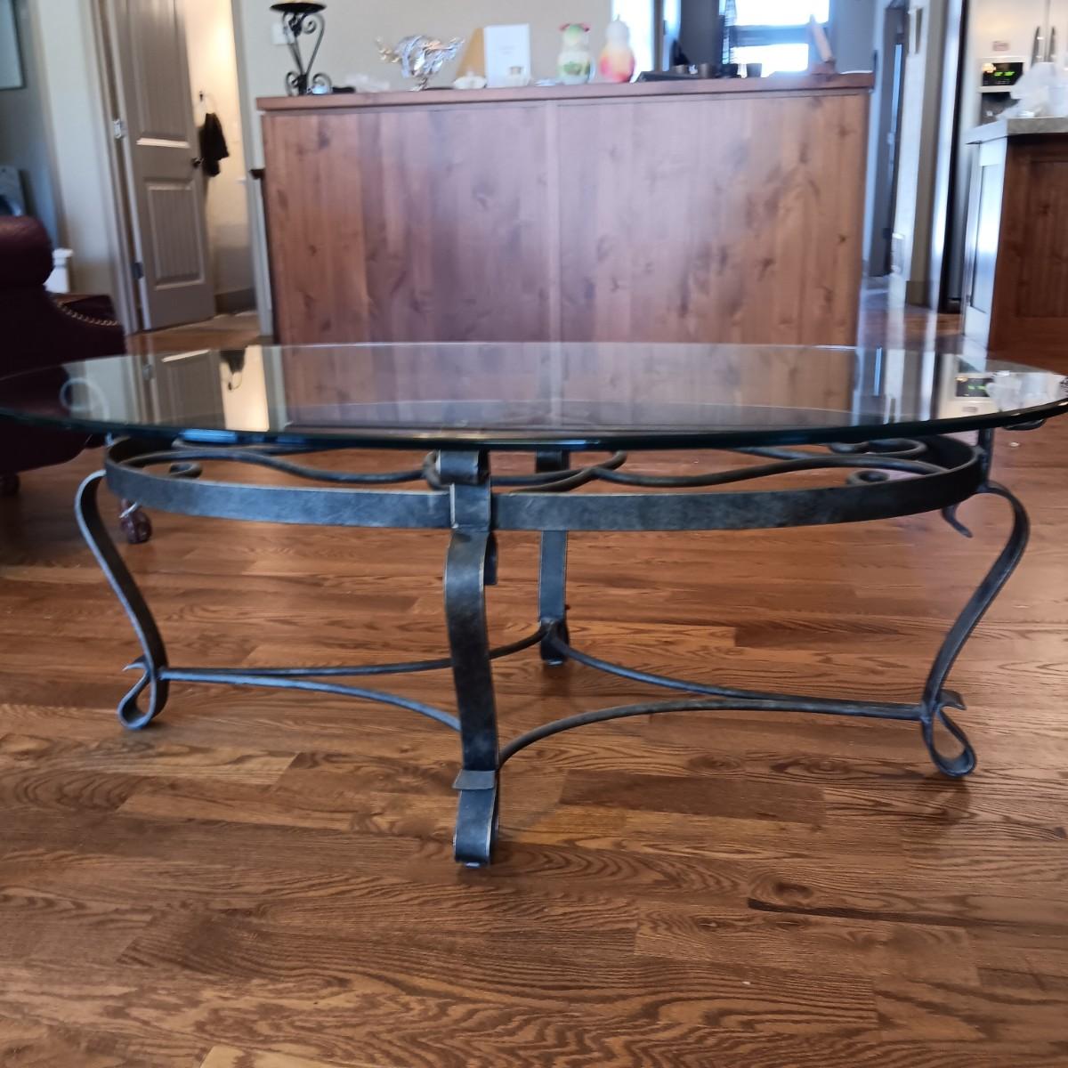 WROUGHT IRON W/BEVELED GLASS TOP COFFEE TABLE