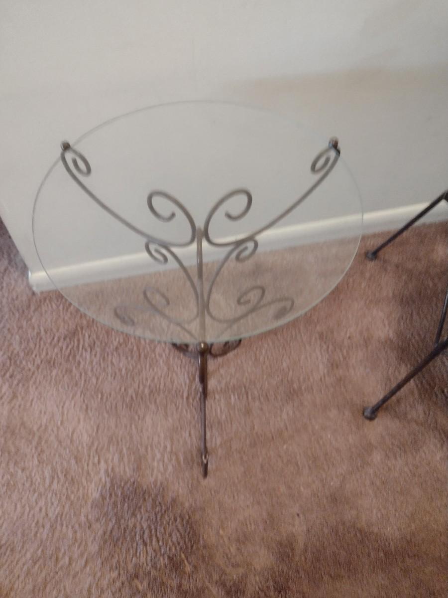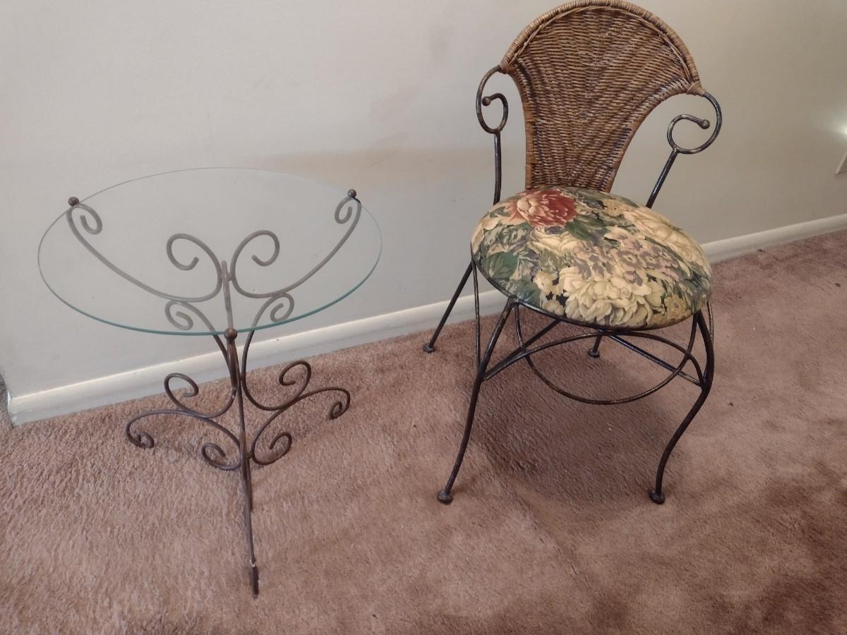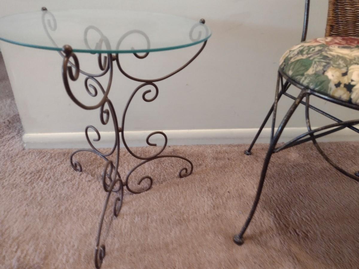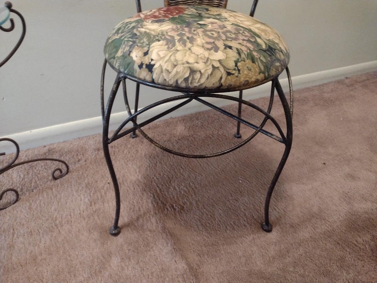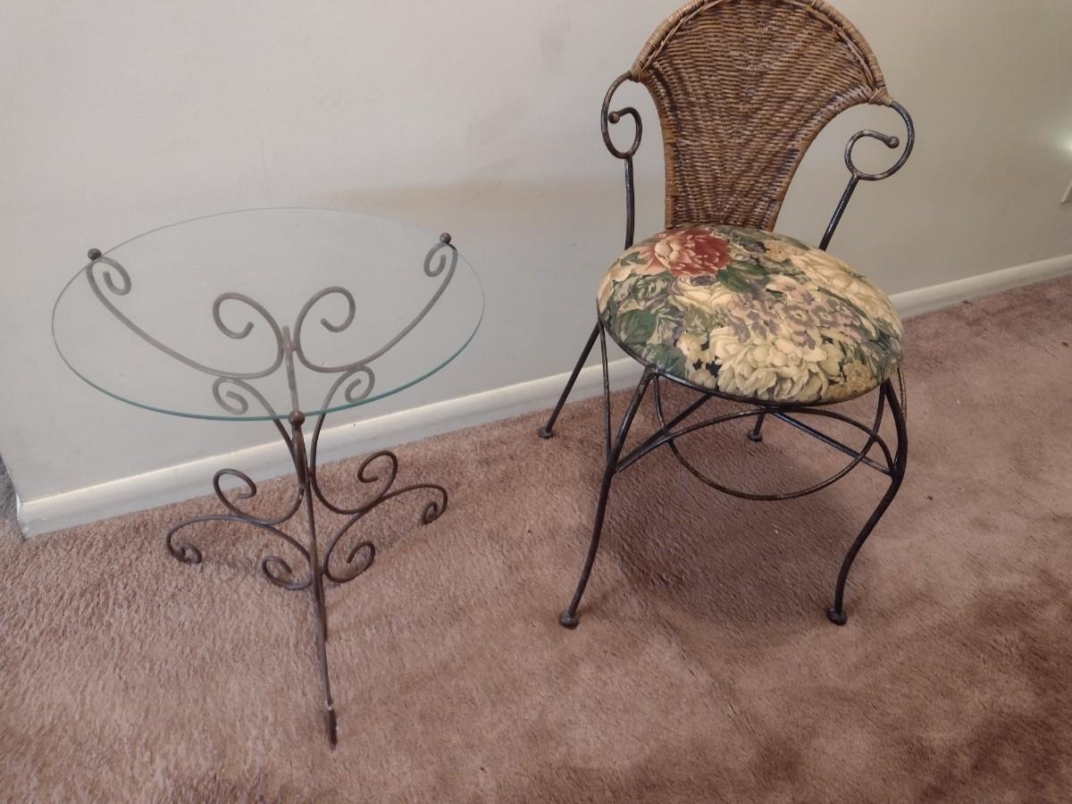 Wrought Metal Dainty Chair and Table Set. Metal colors do not match.