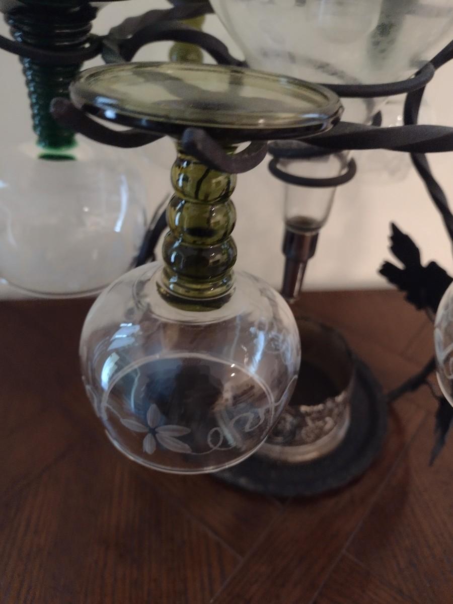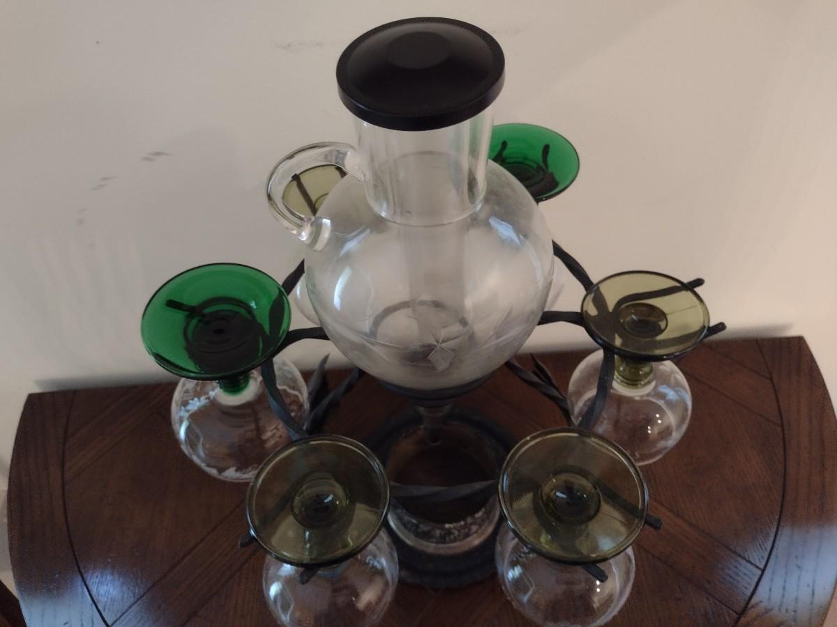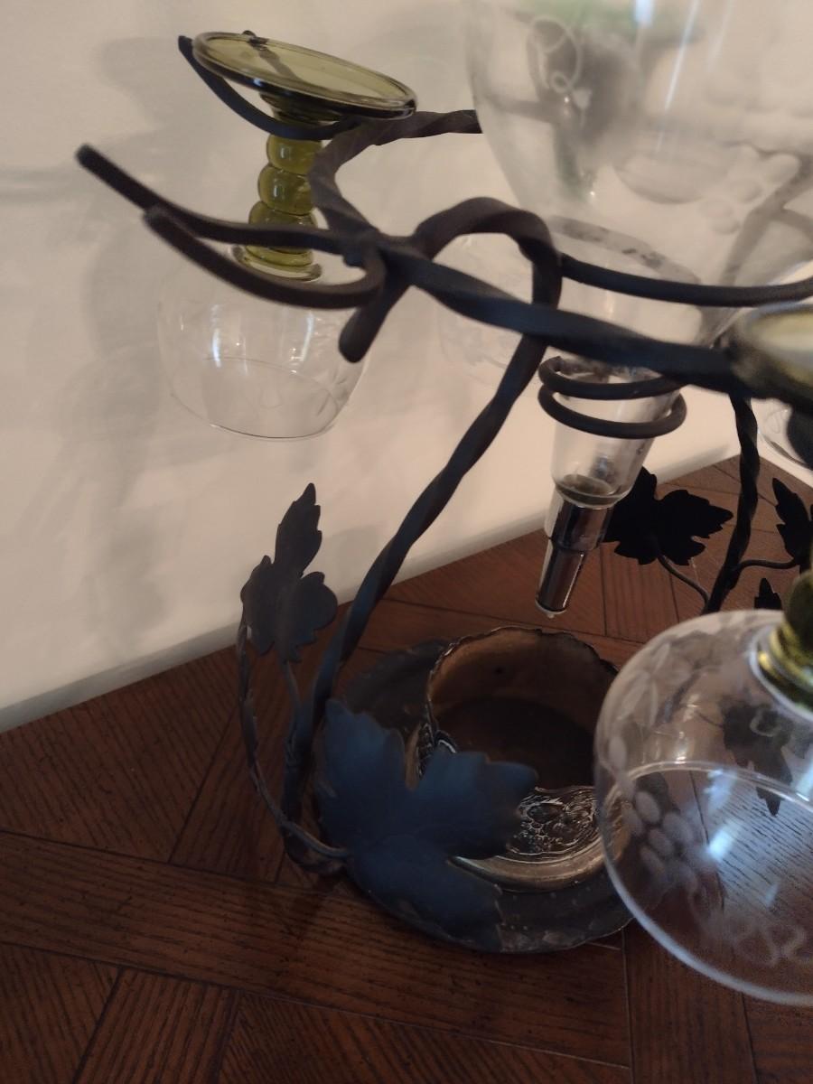 Wrought Metal Frame Dripless Beverage Dispenser with Wine Glass Cradle