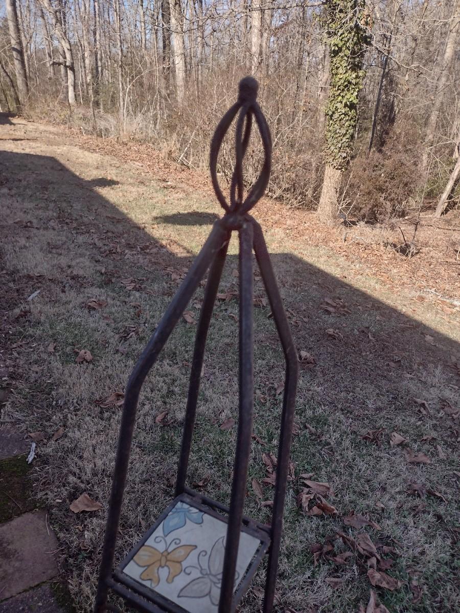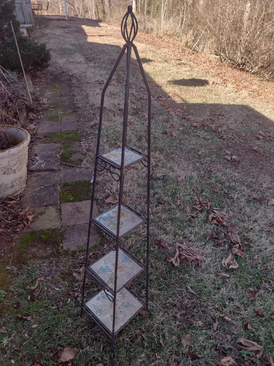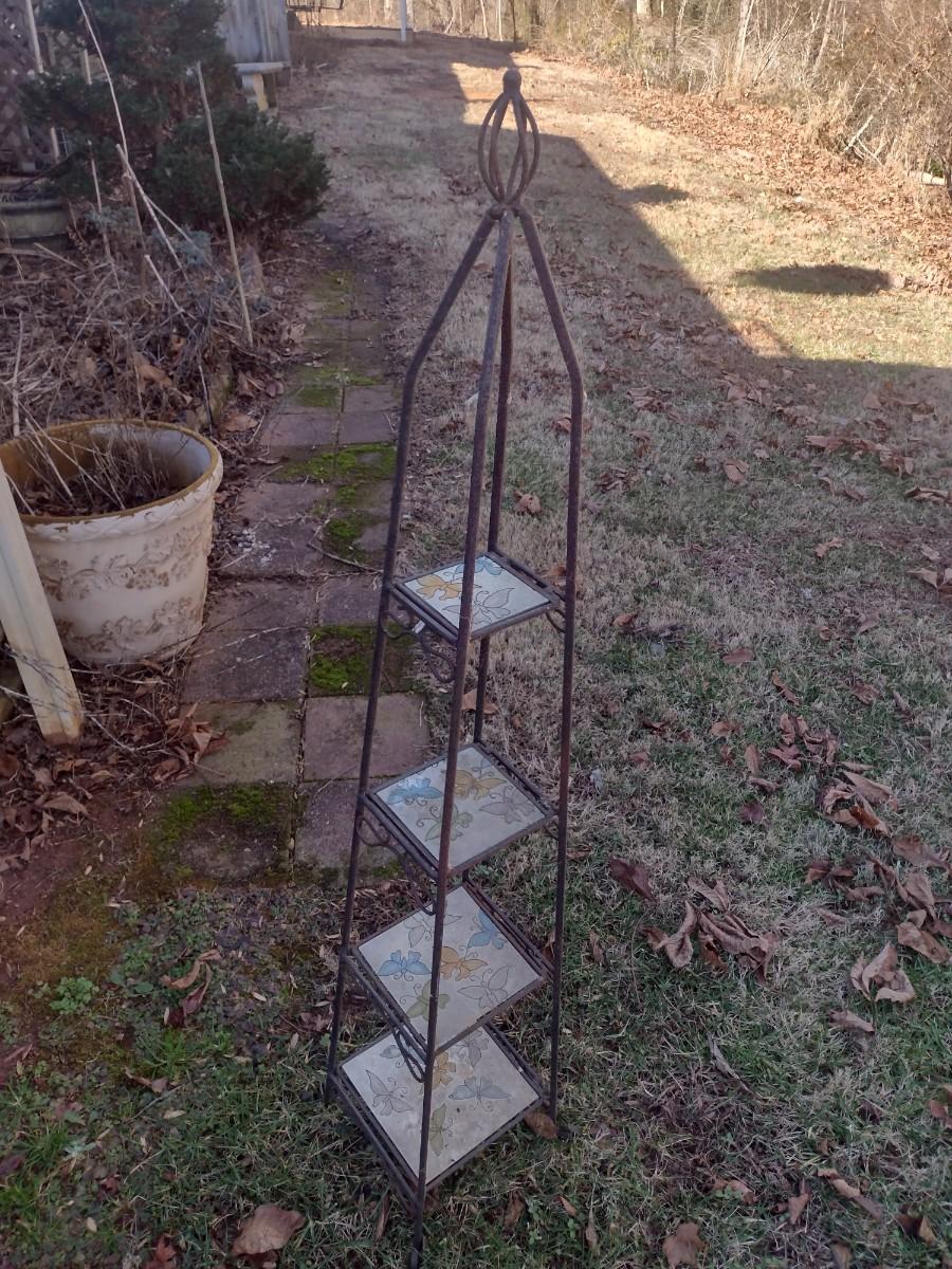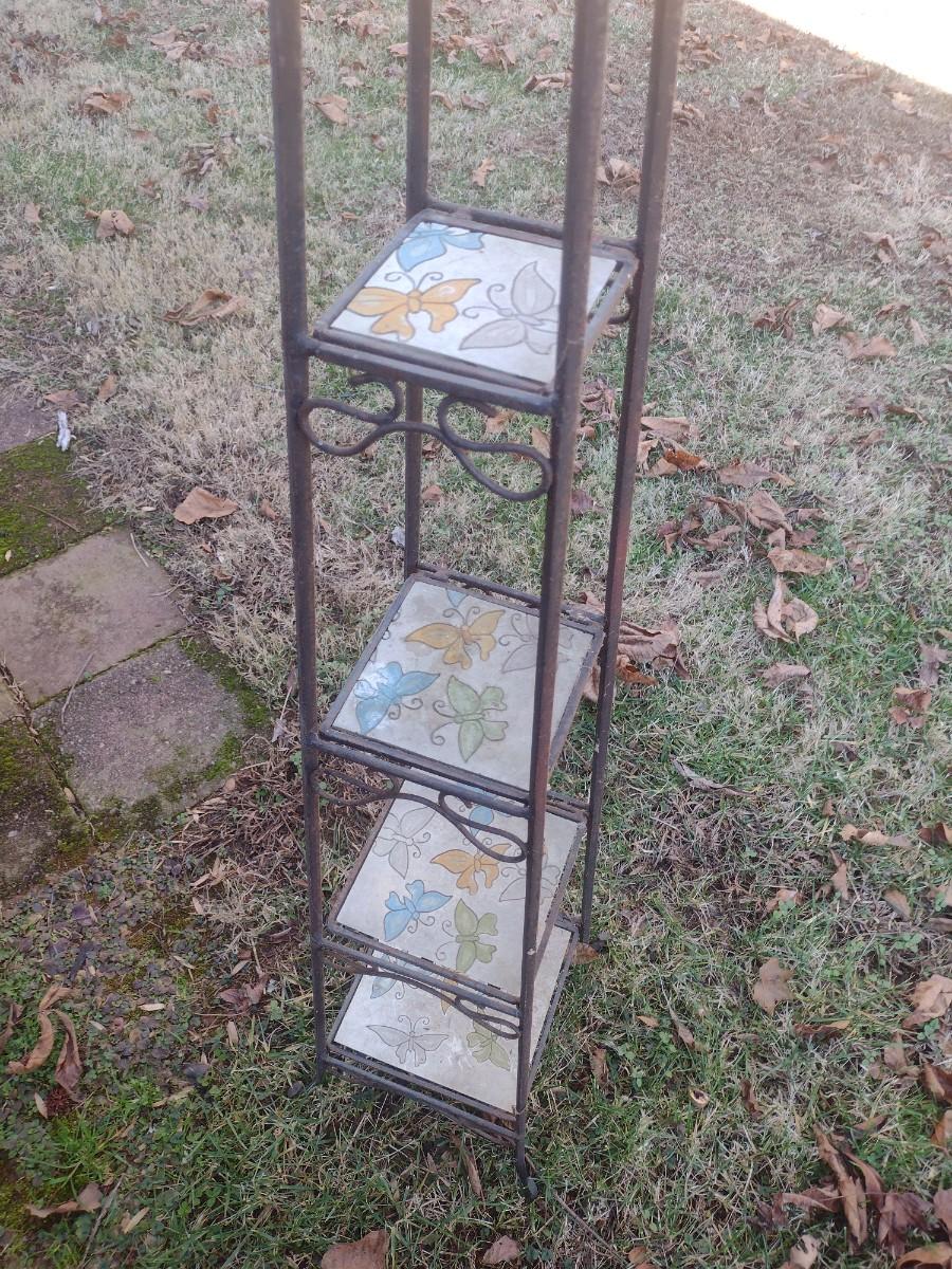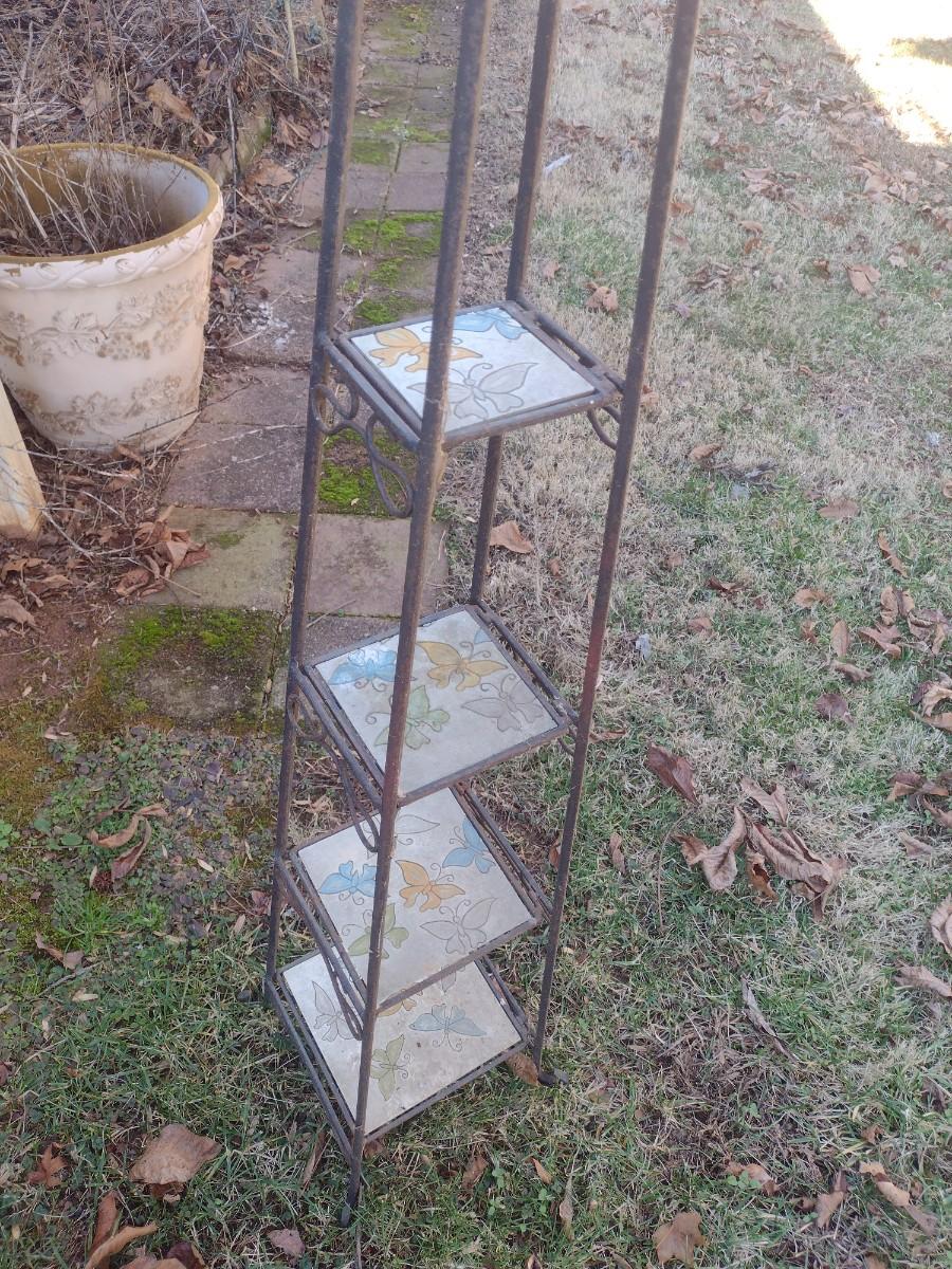 Wrought Metal Frame Plant Stand with Ceramic Tile Shelving