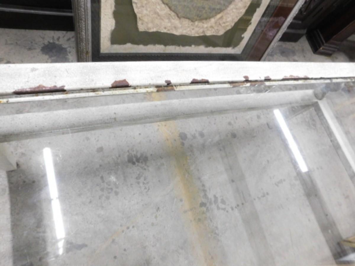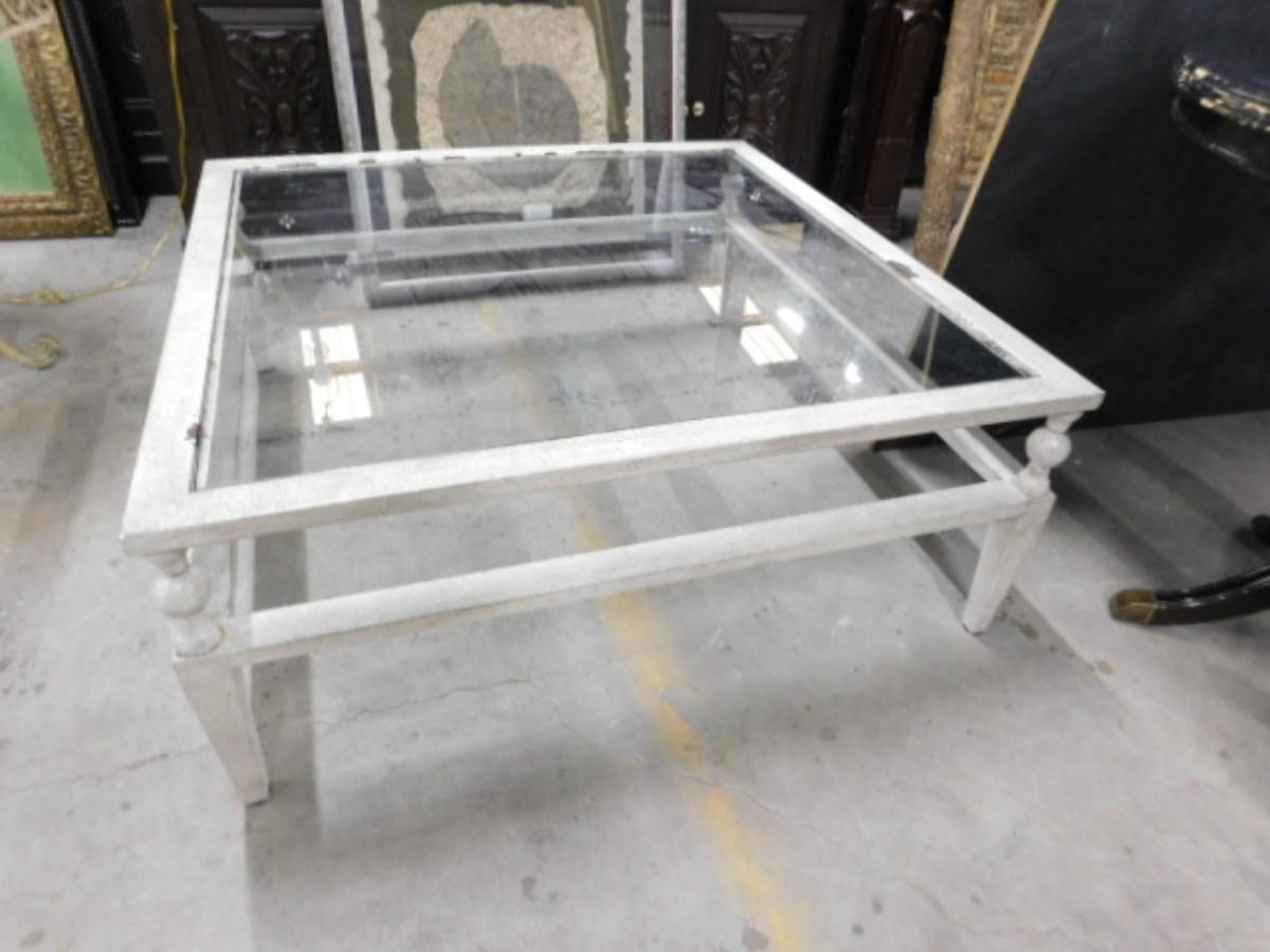 Wrought Metal French Country Glass Top Side Table Choice A. Has exposed metal around glass insert area. Will need to be touched up. Expect some wear or scratches to the finish. Shipping option available via freight or local mover at Buyer's expense. Buyer must have all shipping scheduled within the stated dates and times of pickup. Recommended local mover is Beaty Bros. Moving 828-201-2982