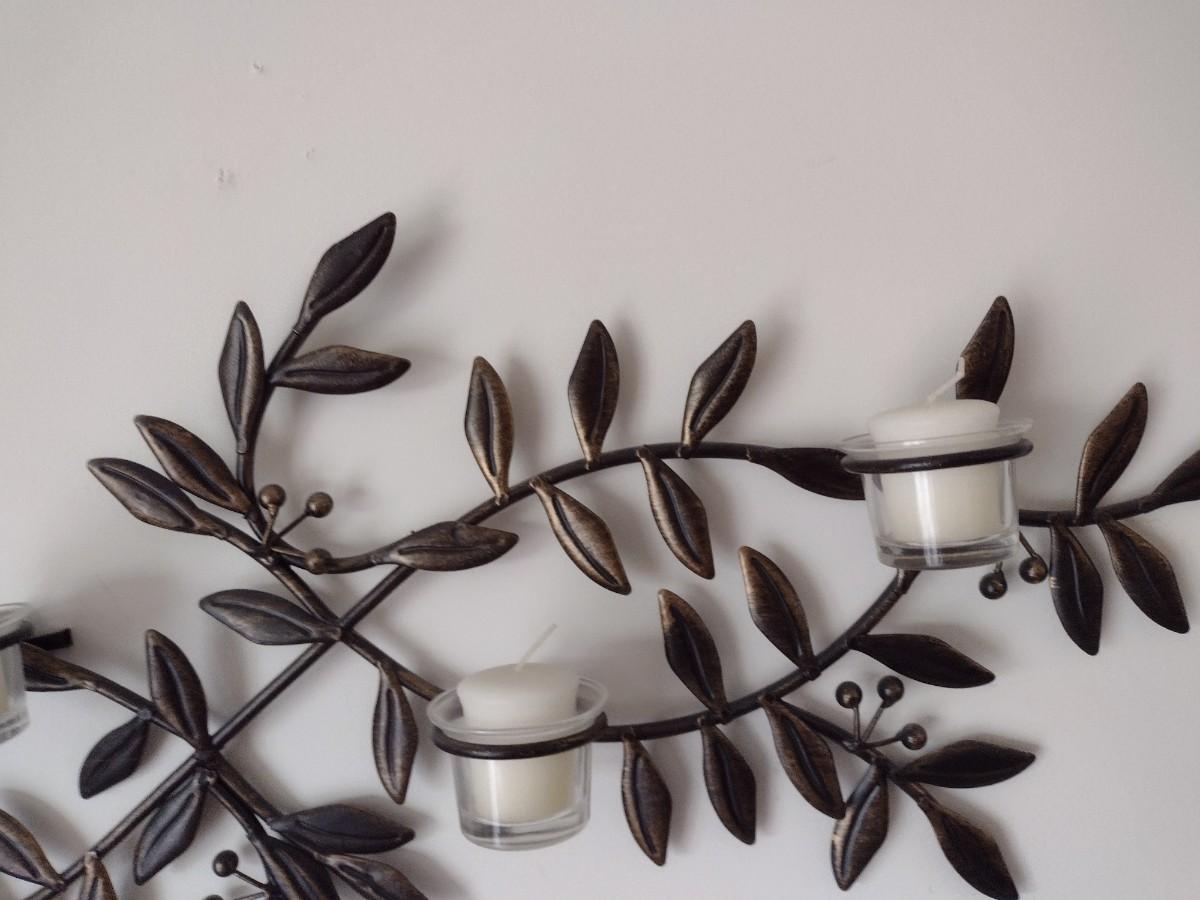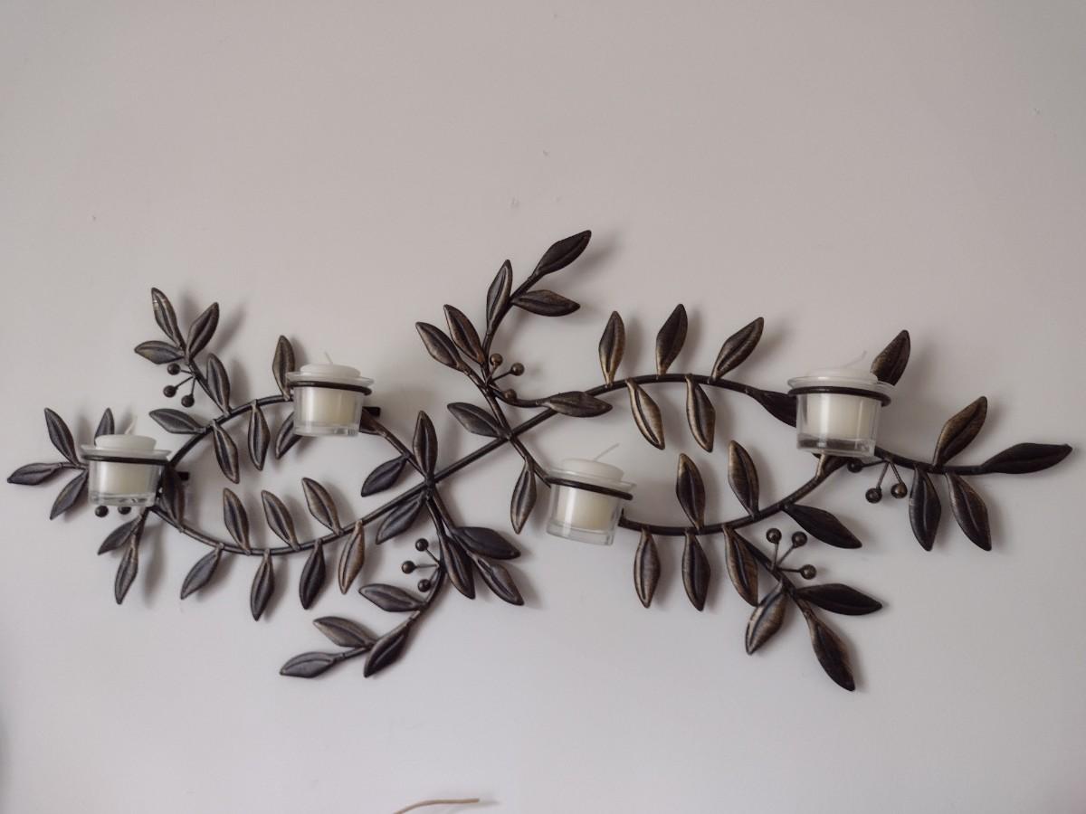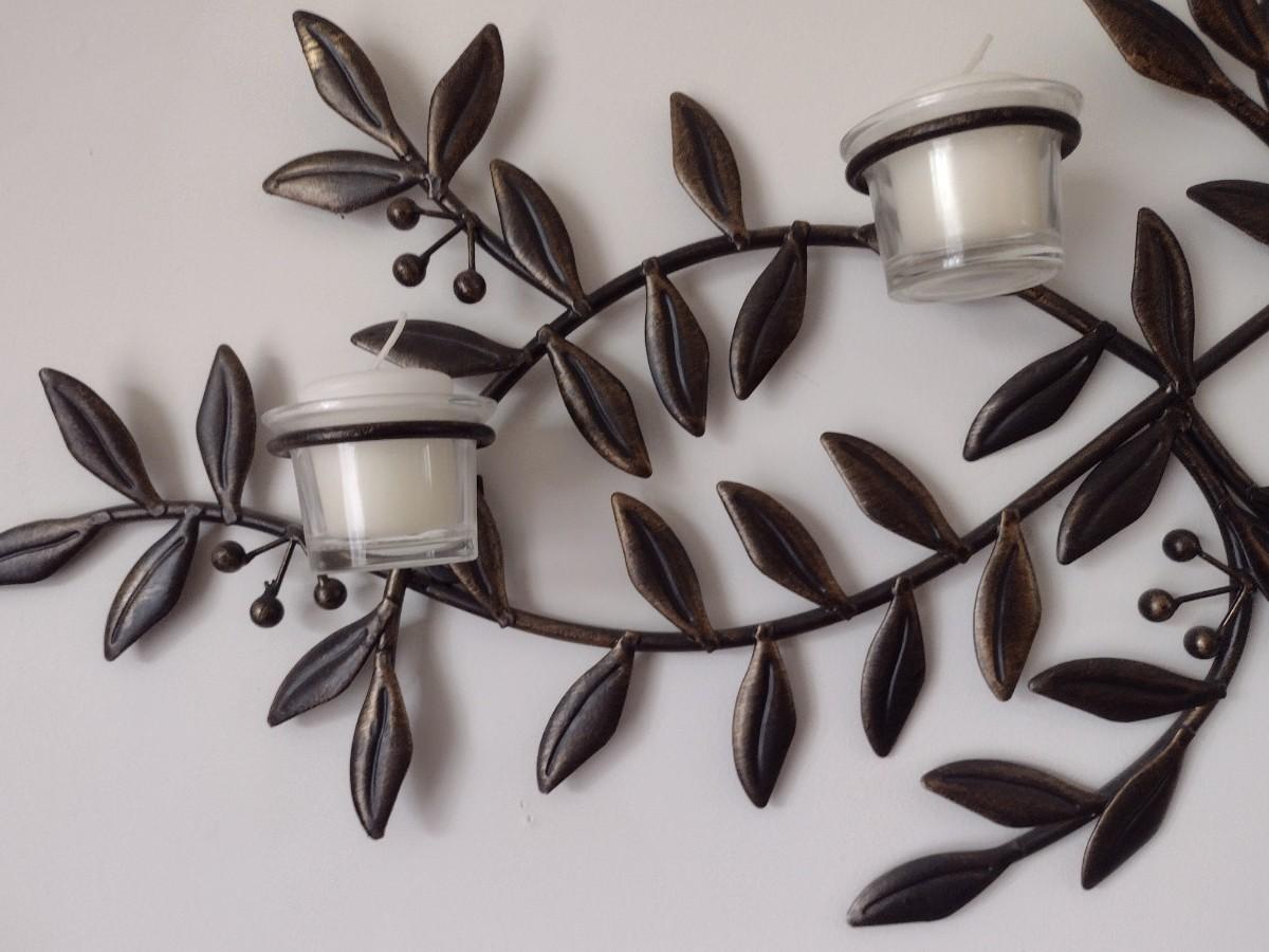 Wrought Metal Leaf and Berry Candle Sconce Wall Decor