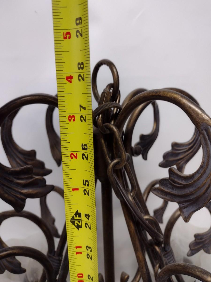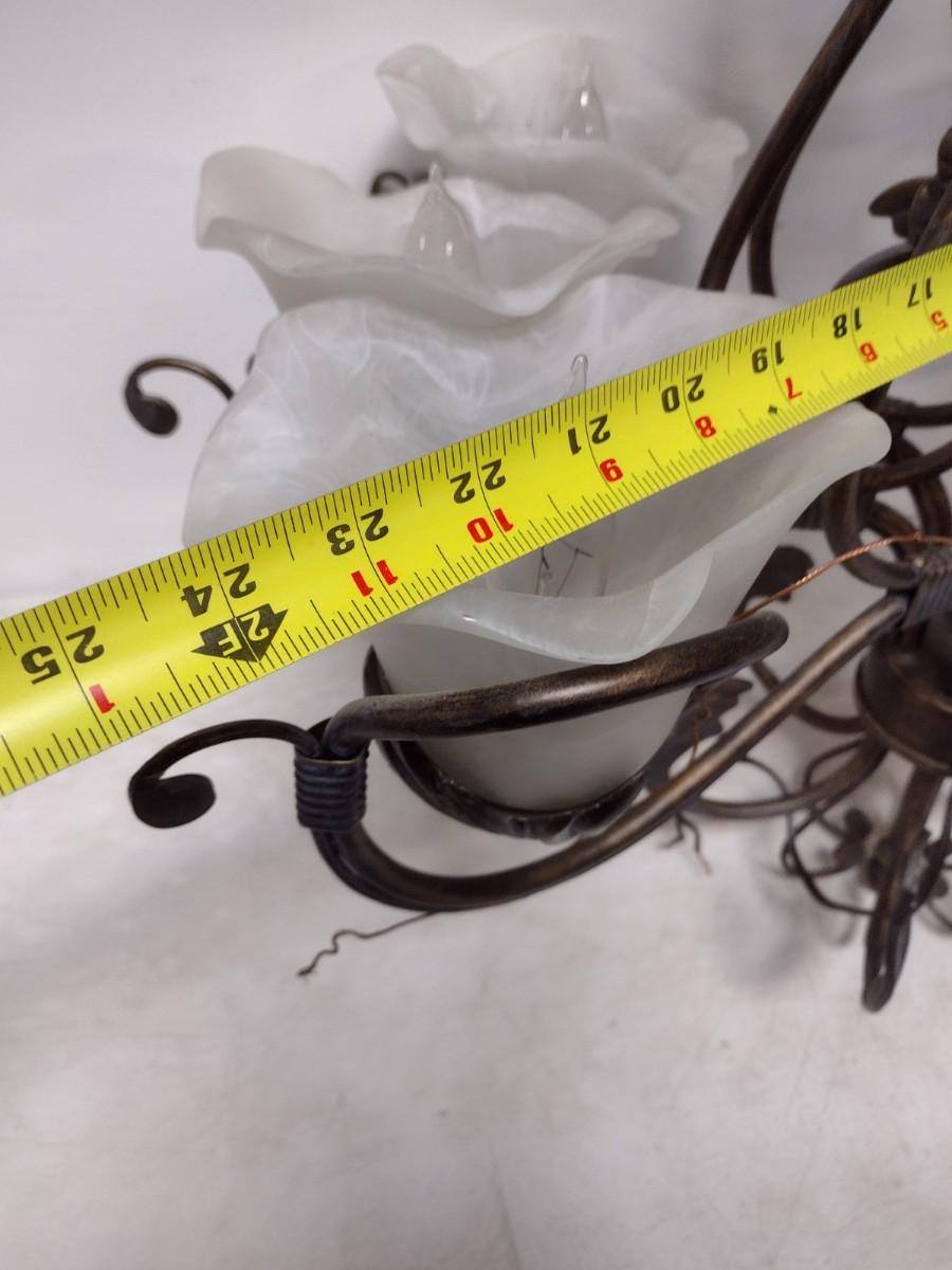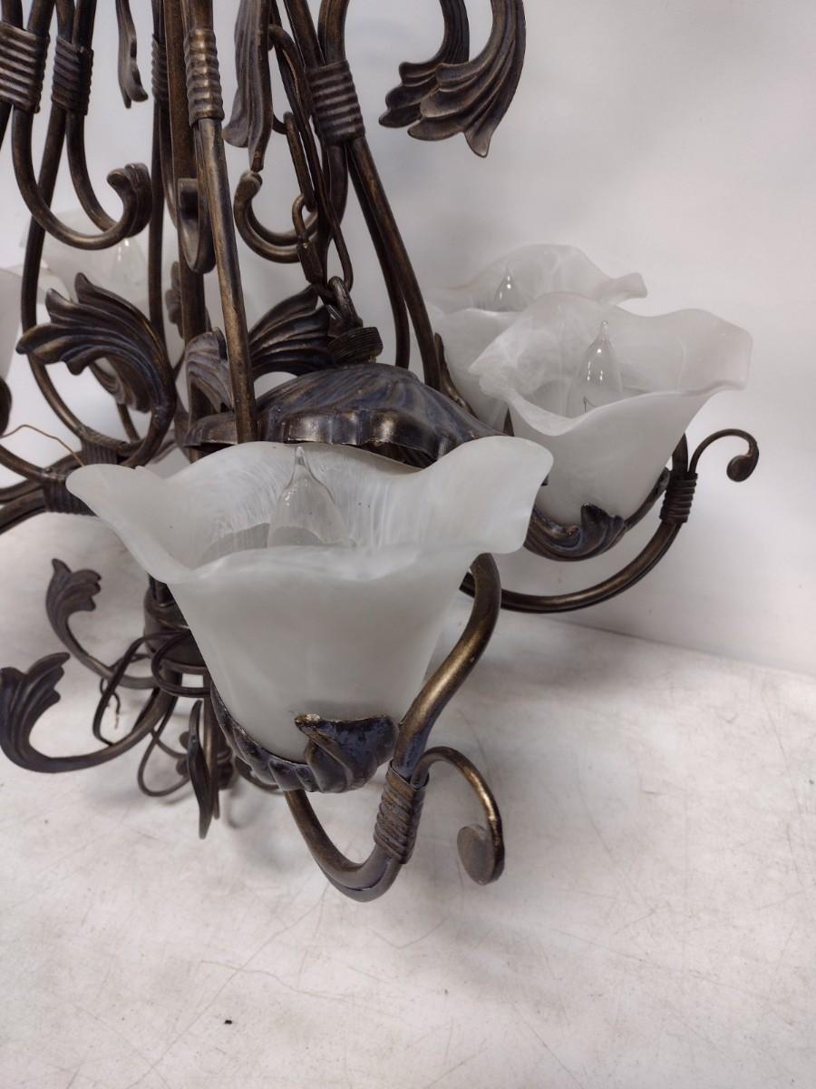 Wrought Metal Leaf and Glass Flower Shade Chandelier