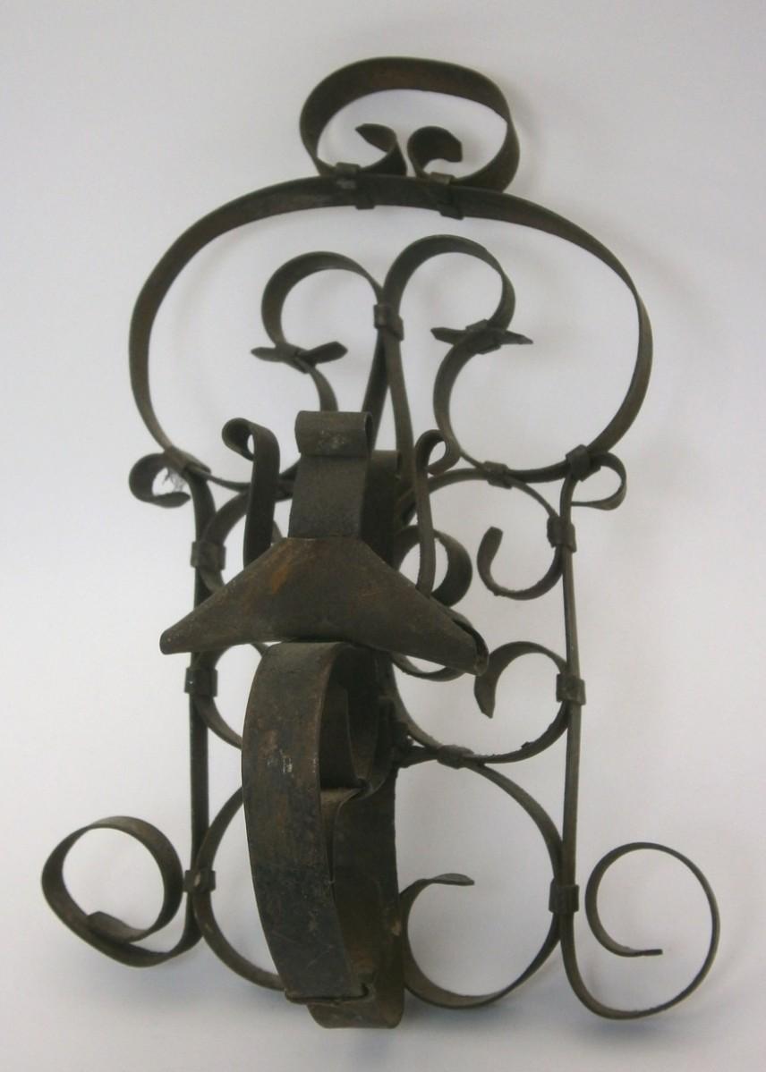 Wrought Steel Hanging Candle Holder from early to mid 1900's, 6 1/2 in. tall.