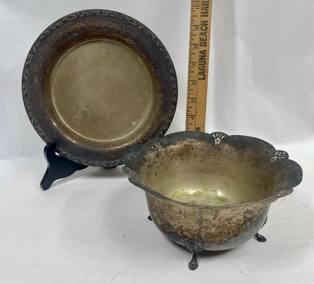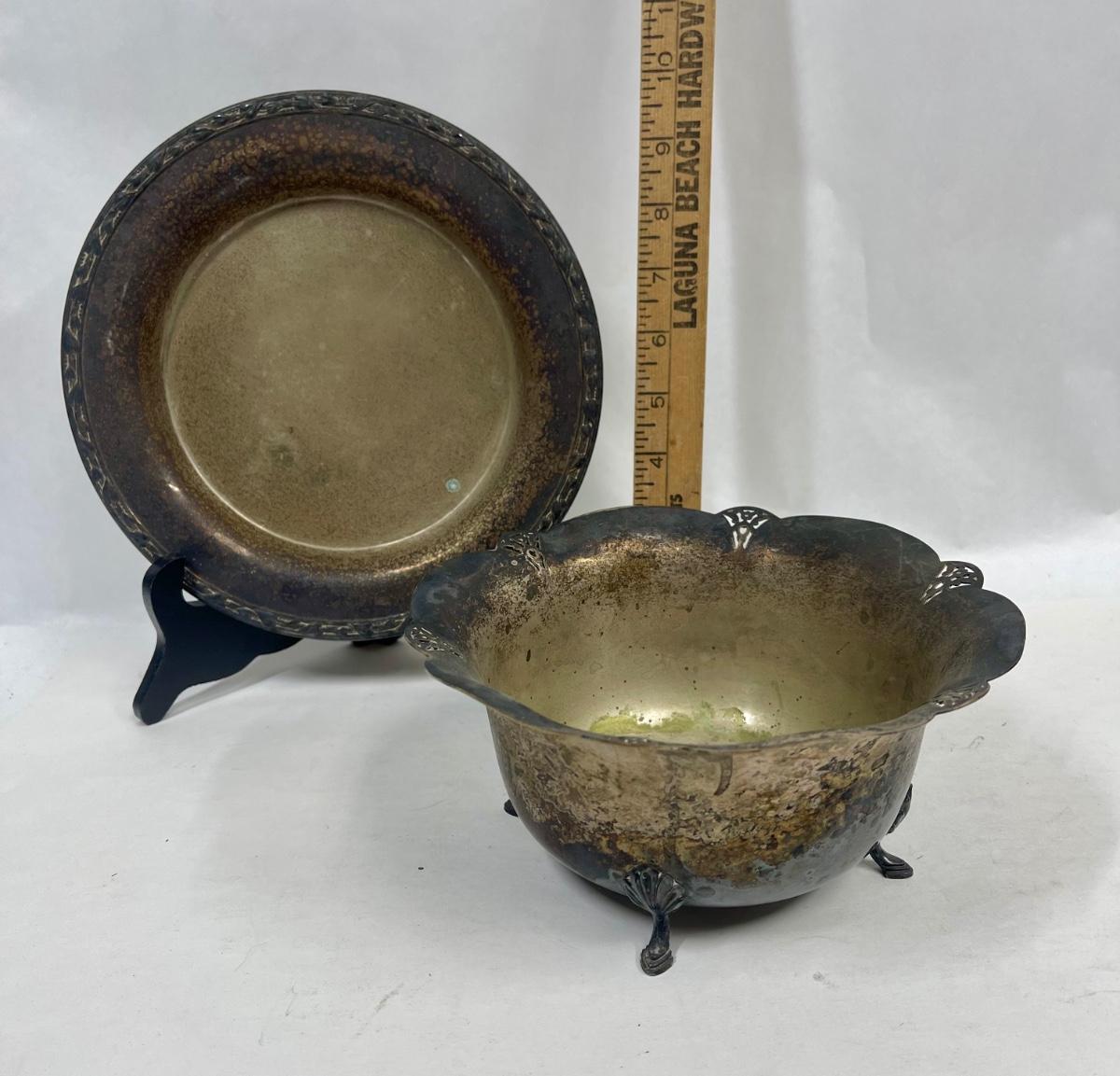 Silver-Plate Serving Pieces - Footed Bowl & 9" plate or platter