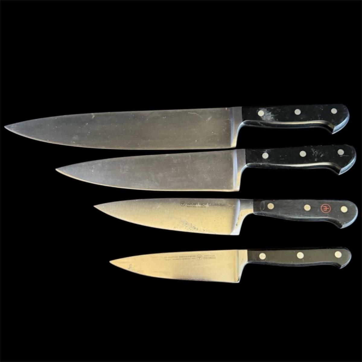 This Wüsthof chef's knife collection contains four knives with the largest measuring 15” long.