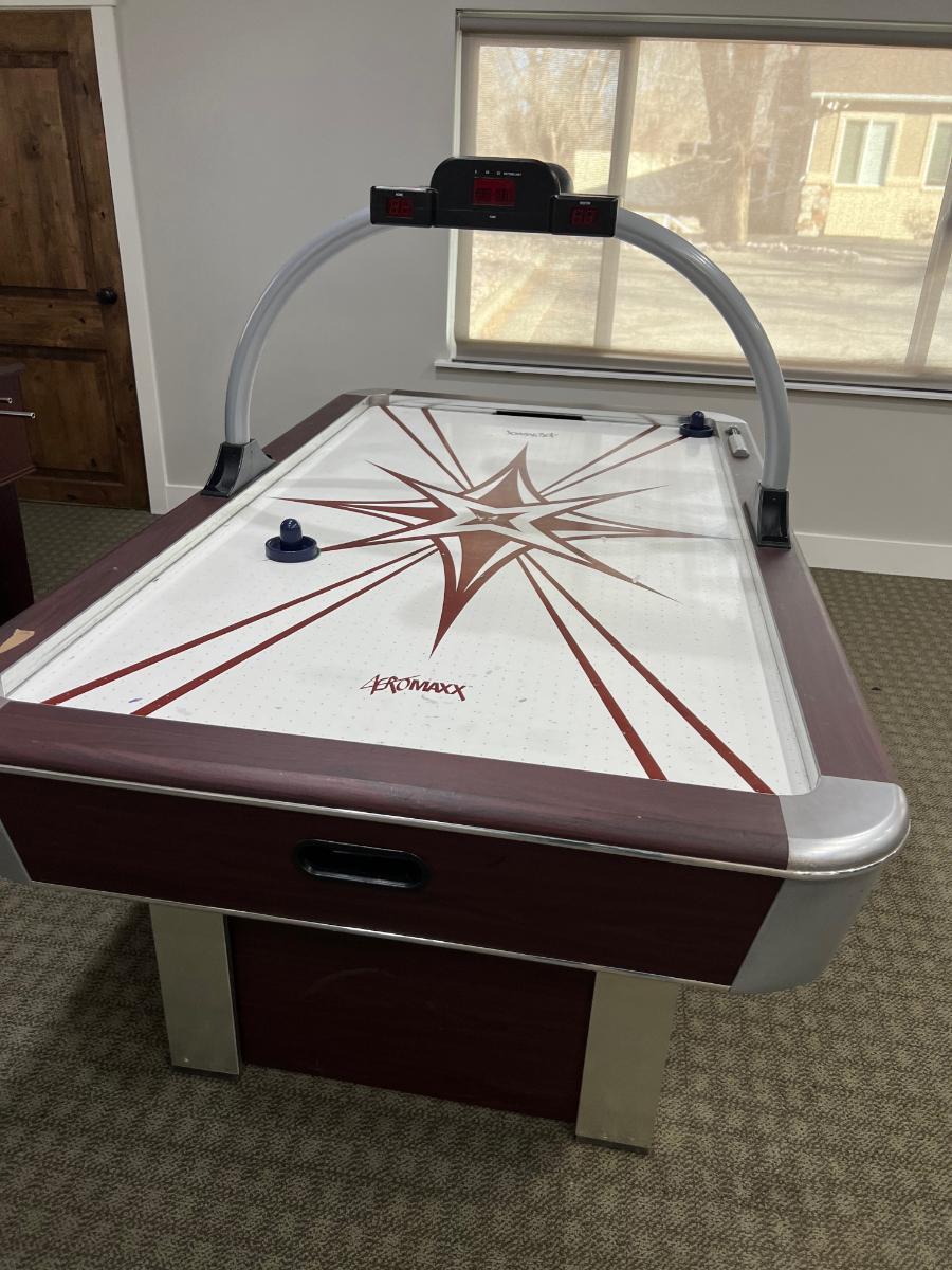 Big. Heavy Used. USABLE!!! Full Size. No PUCK! What? Will need a Puck. Score Board Does Not Light Up. But the Air Works! Perfect for the Large Family Room.