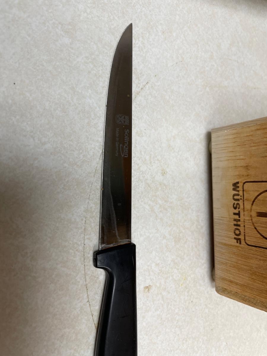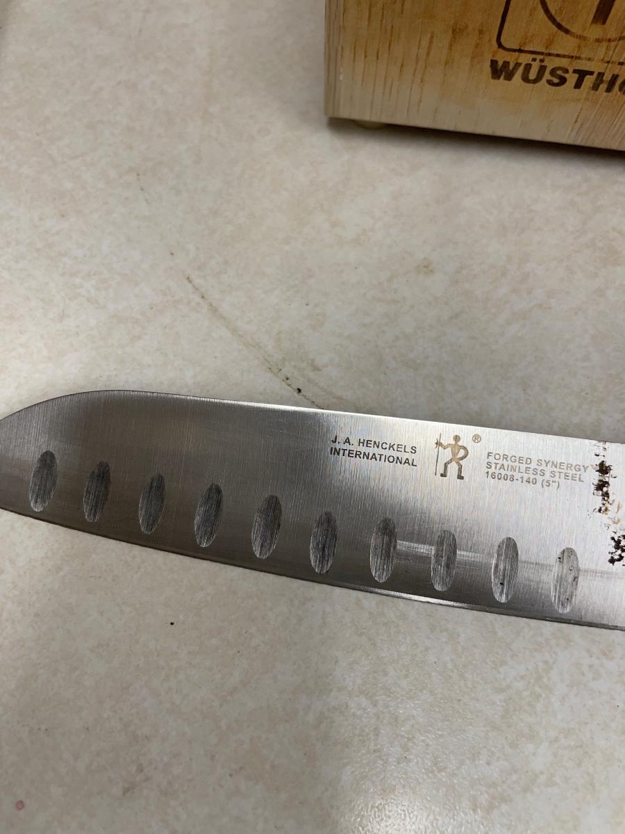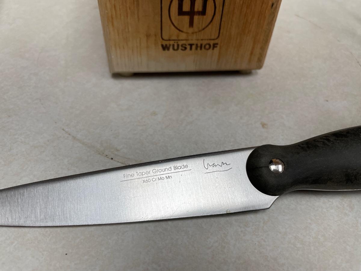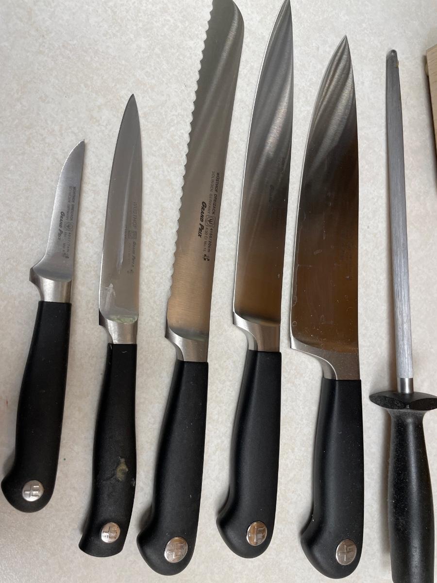Wusthof knife block and 7 Wusthof knives and sharpener