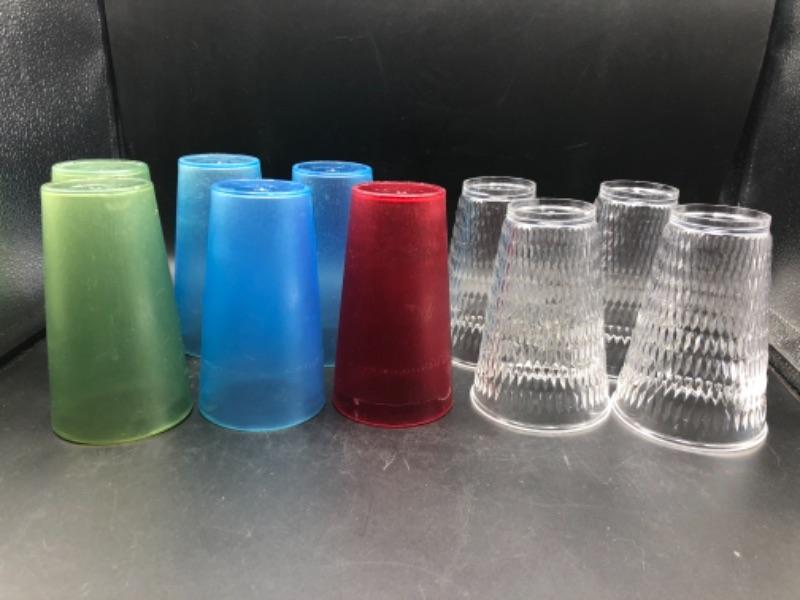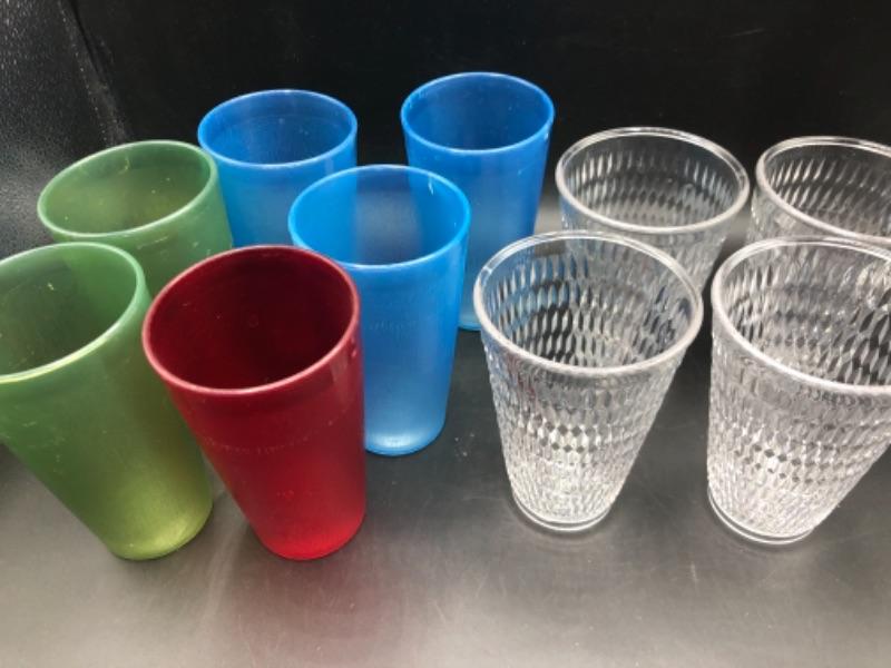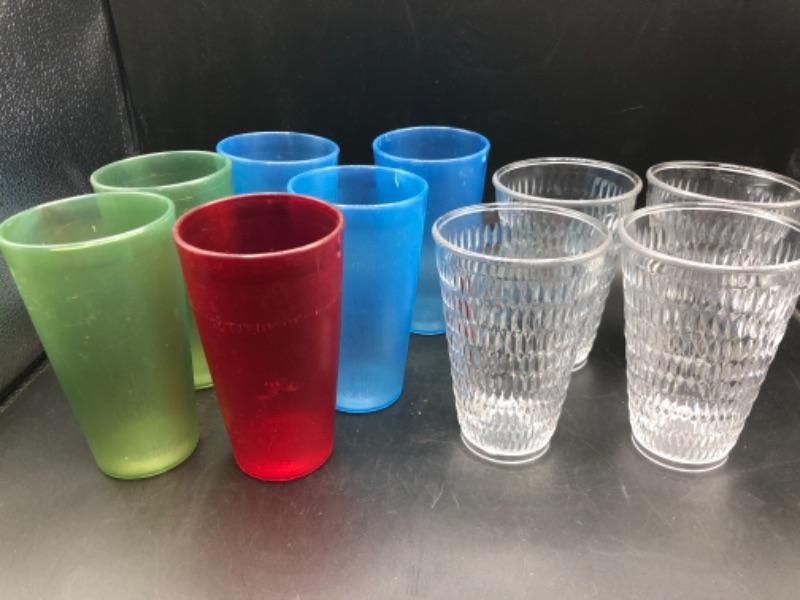 Set of 10 pizza parlor style plastic drink cups. Two different styles, multiple colors. Good used conditions.
