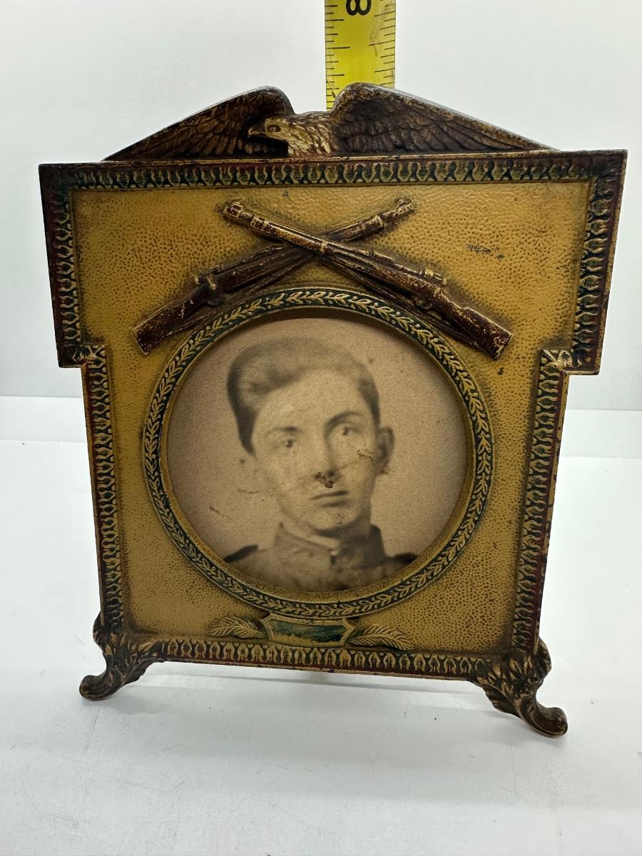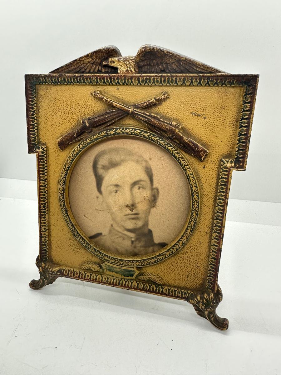 WW1 1917 US Army Soldier Photo In Original Ornate Cast Frame