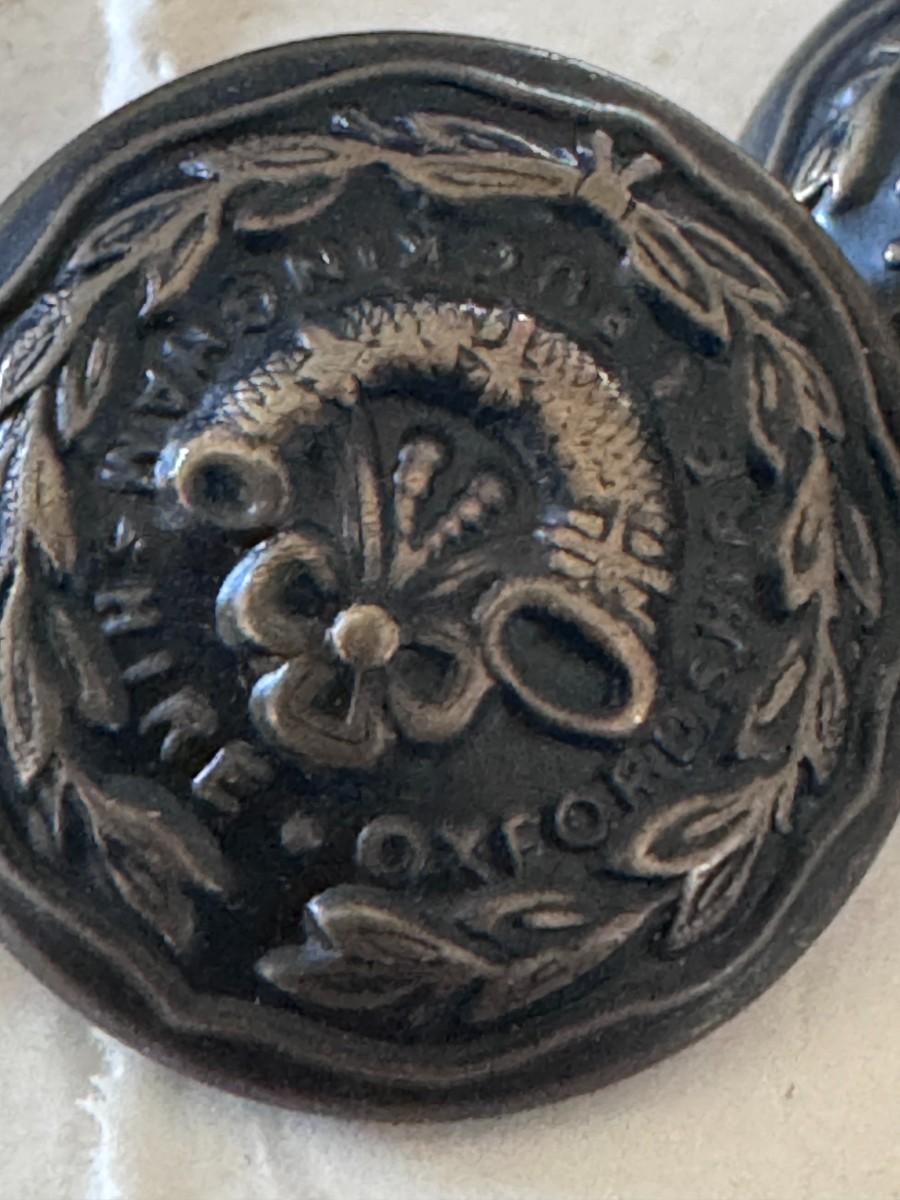 Regimental Affiliation: The button's design features elements characteristic of the Oxfordshire and Buckinghamshire