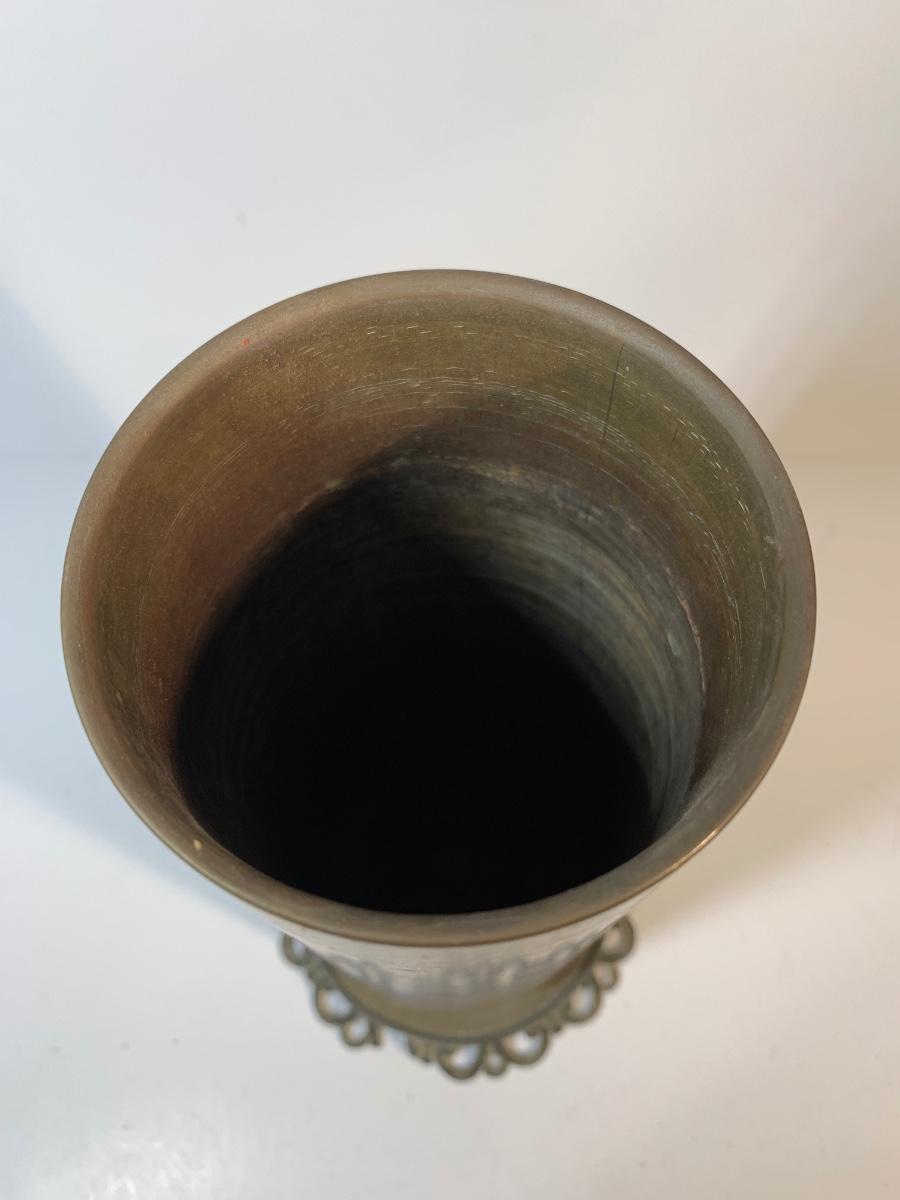 'Trench art shell case on decorative base