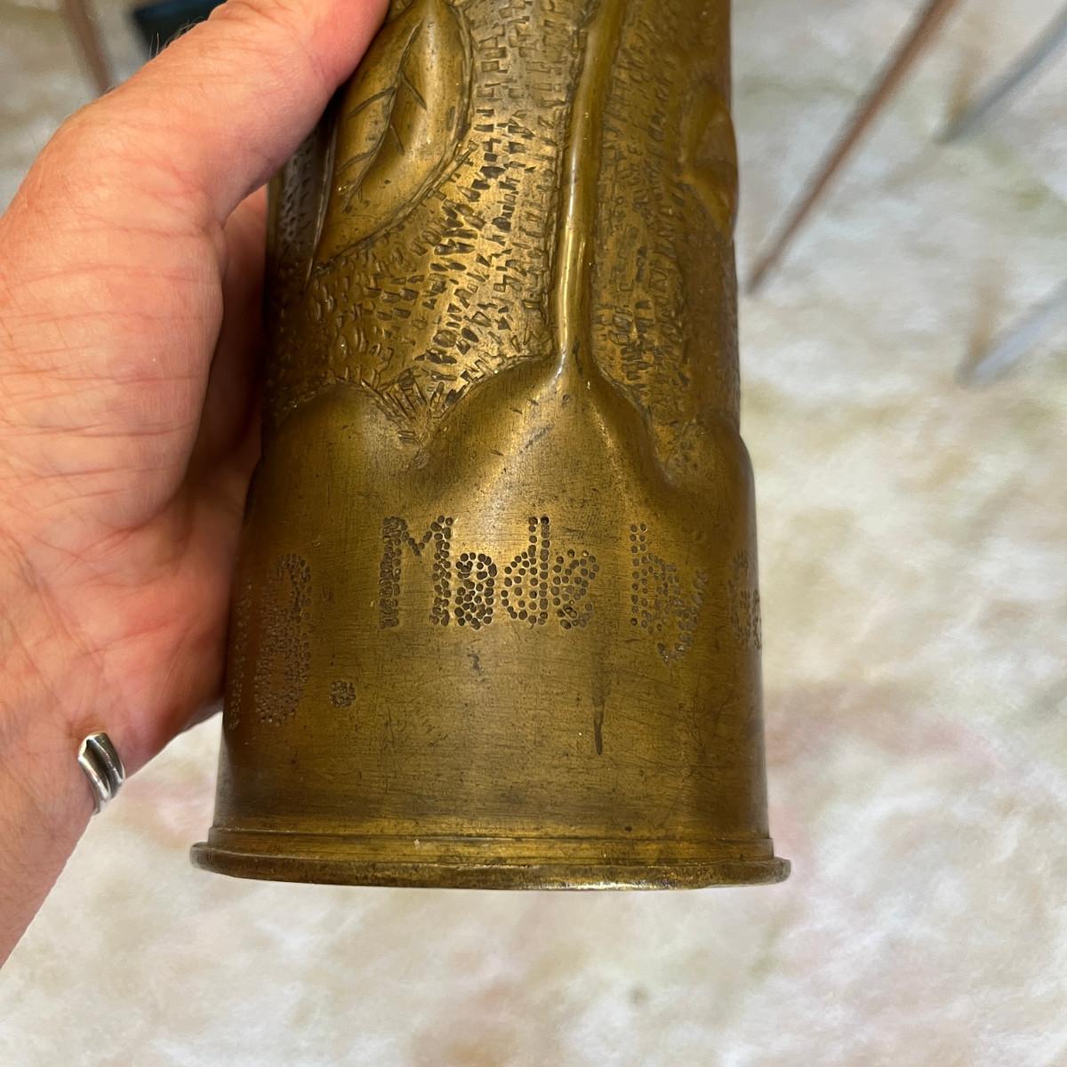 WW1 Trench Art US Navy 75mm Shell Casing Vase