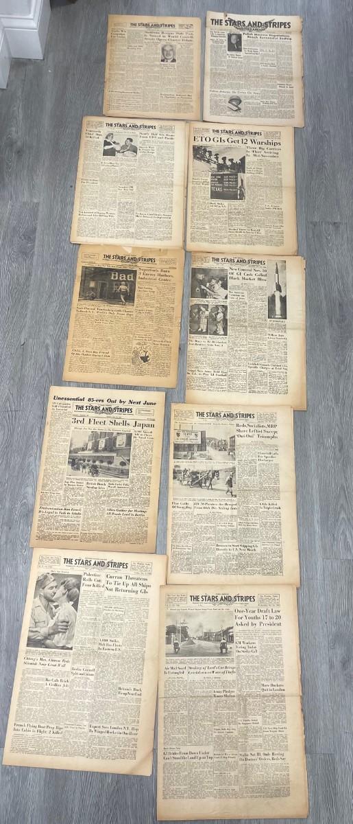 Description: WW2 Collection Of The Stars And Stripes Newspapers / 10 Newspapers. Own a piece of history. Measurement approximate:Material: