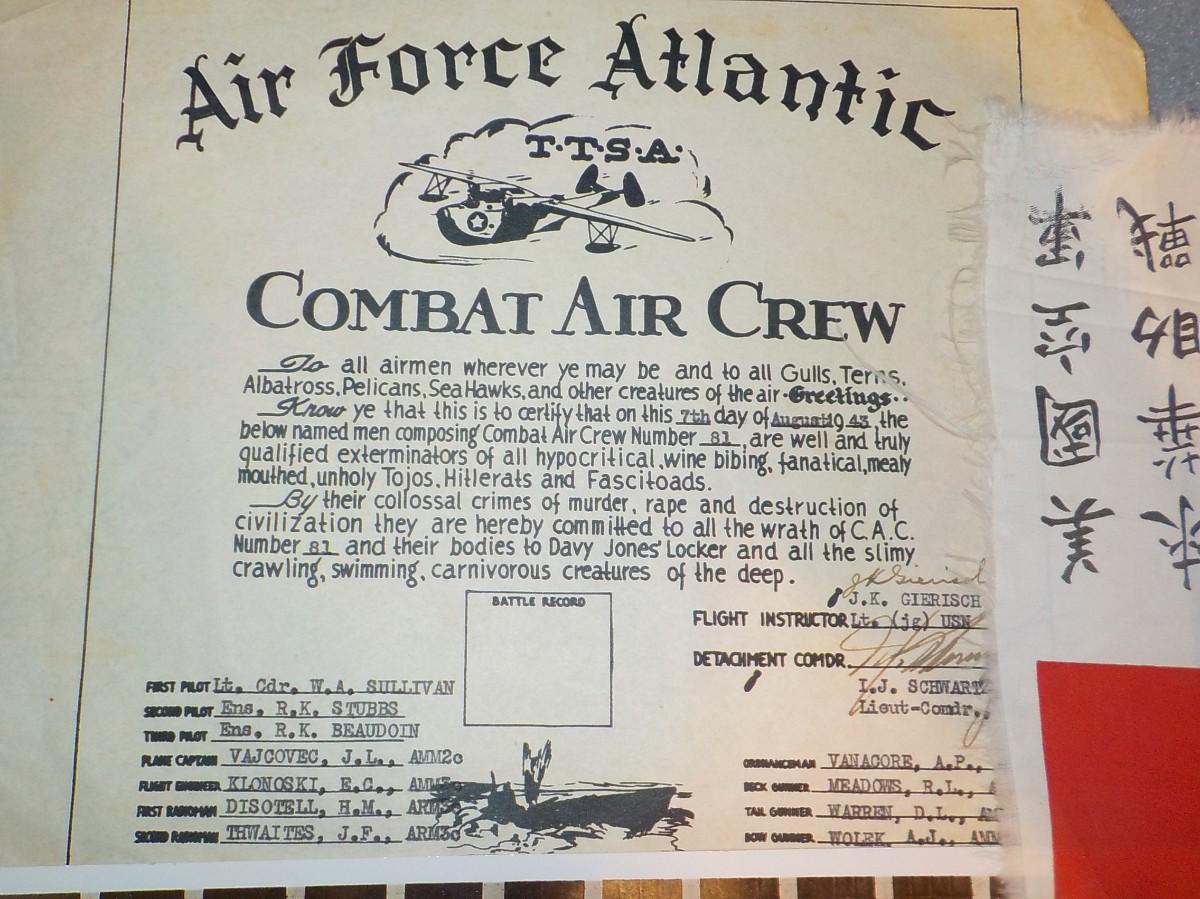 You don't see this that often a slik Bloot chit of the south pafiic and Naval air crew plus " Air Force Atlantic".